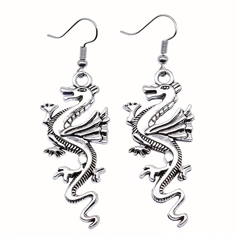 These unique fly dragon dangle earrings are the perfect accessory for a retro goth style look. Made from zinc alloy with silver plating, they make a creative and stunning gift for any female.