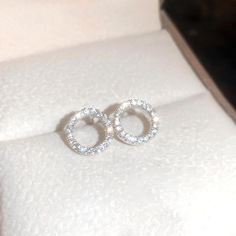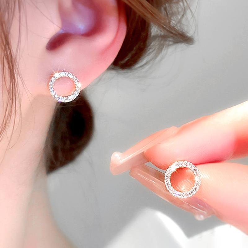 These stylish stud earrings feature a geometric circle design with rhinestone accents. Made with alloy and stainless steel post, they are perfect for daily wear or parties, suitable for all seasons.