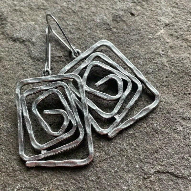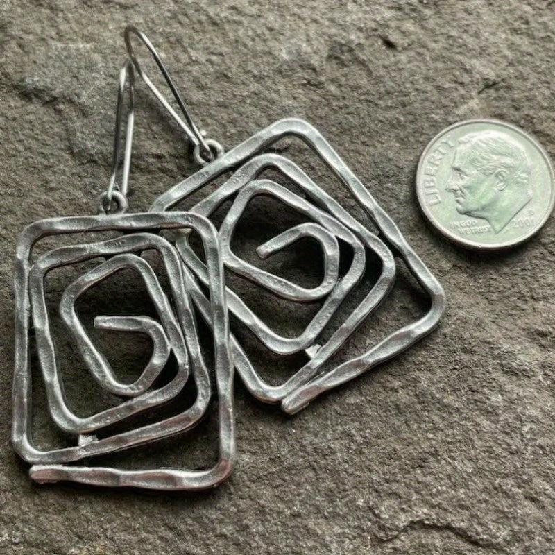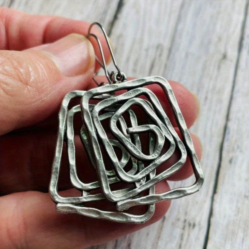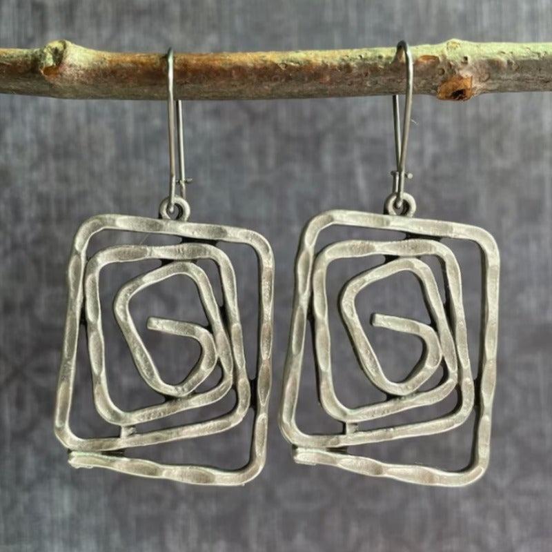 Vintage Geometric Spiral Earrings Copper Golden Finish