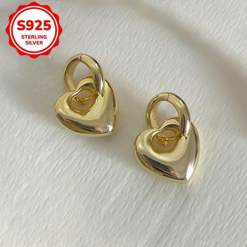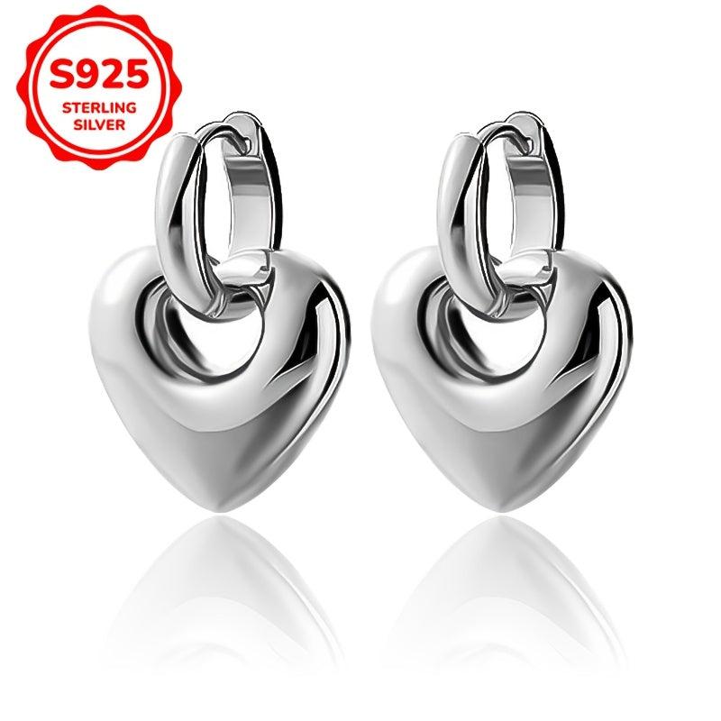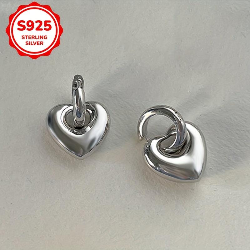 Add a touch of chic style to any outfit with these heart-shaped dangle earrings. Made of high-quality 925 sterling silver, these earrings are perfect for everyday wear or as a thoughtful gift for a loved one.