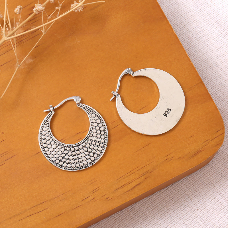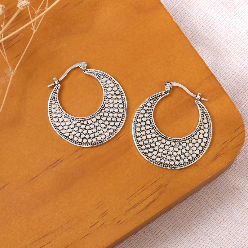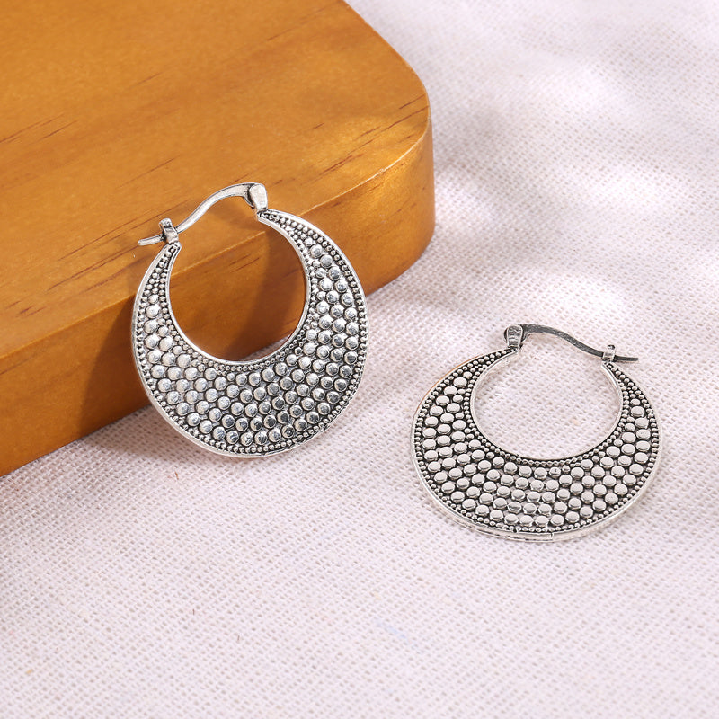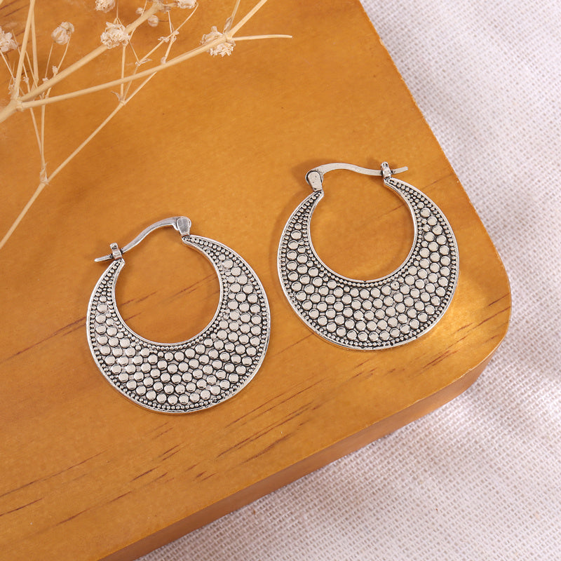 These vintage hoop earrings feature an engraved pattern and C shape design. They are a sweet addition to your jewelry collection.