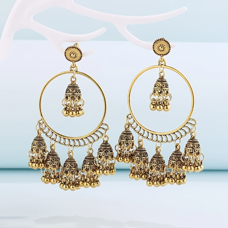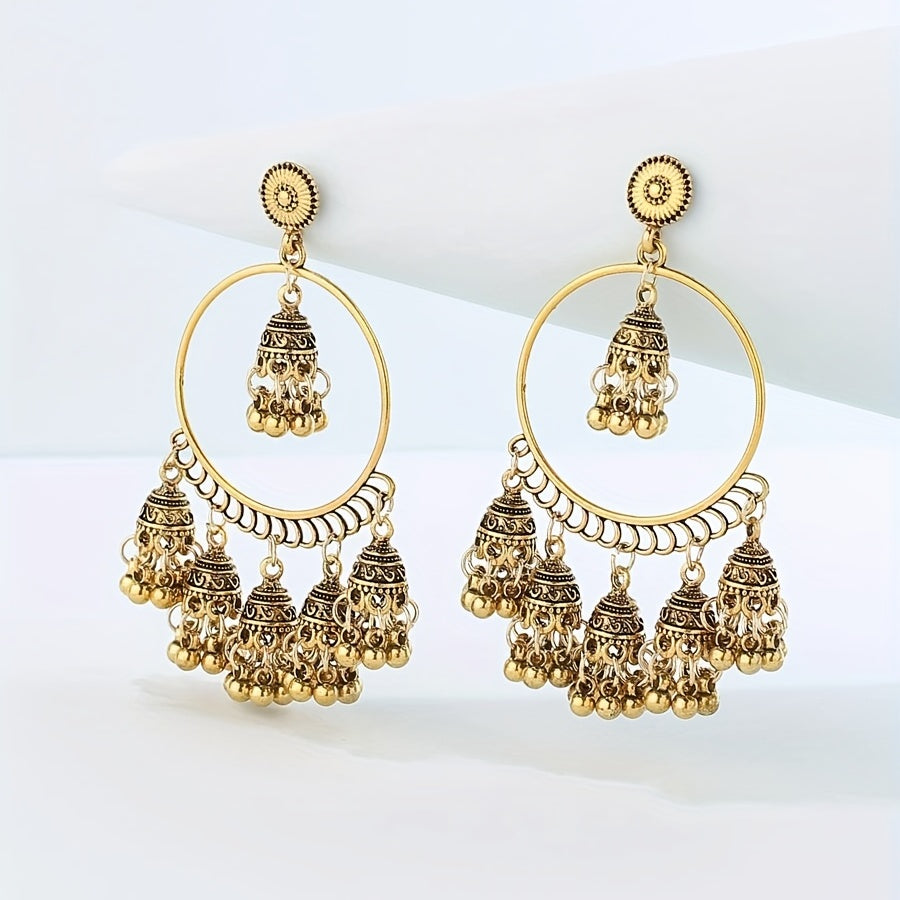 Add a touch of elegance to your outfit with these vintage Indian hoops jhumka earrings. Perfect for everyday wear or special occasions.