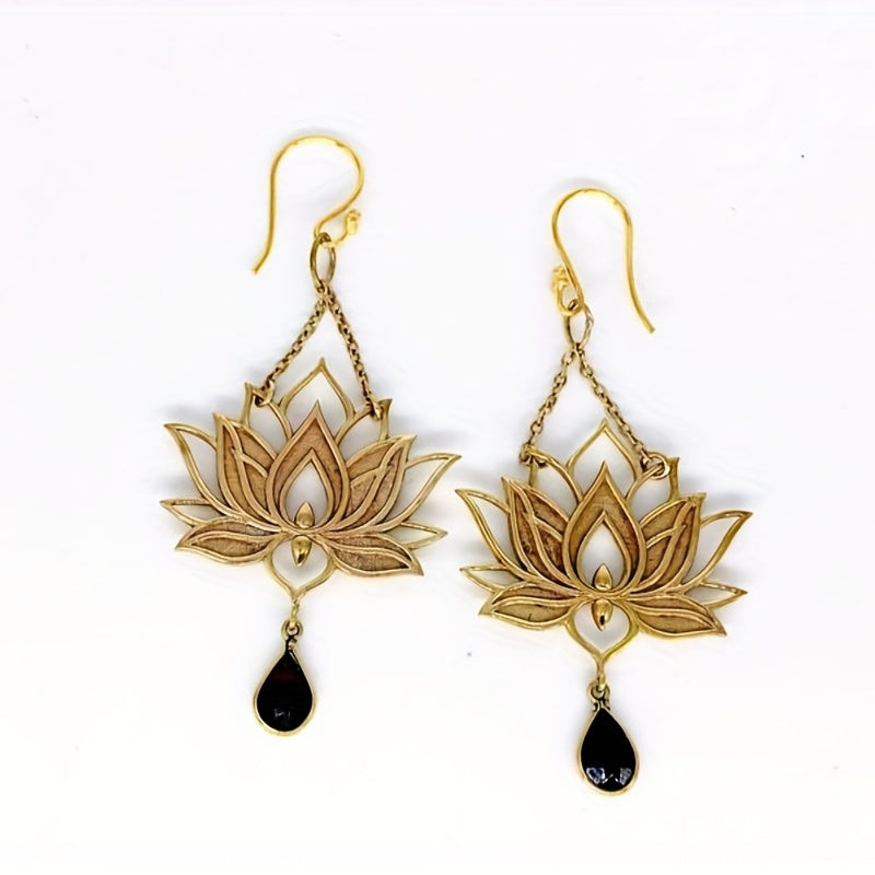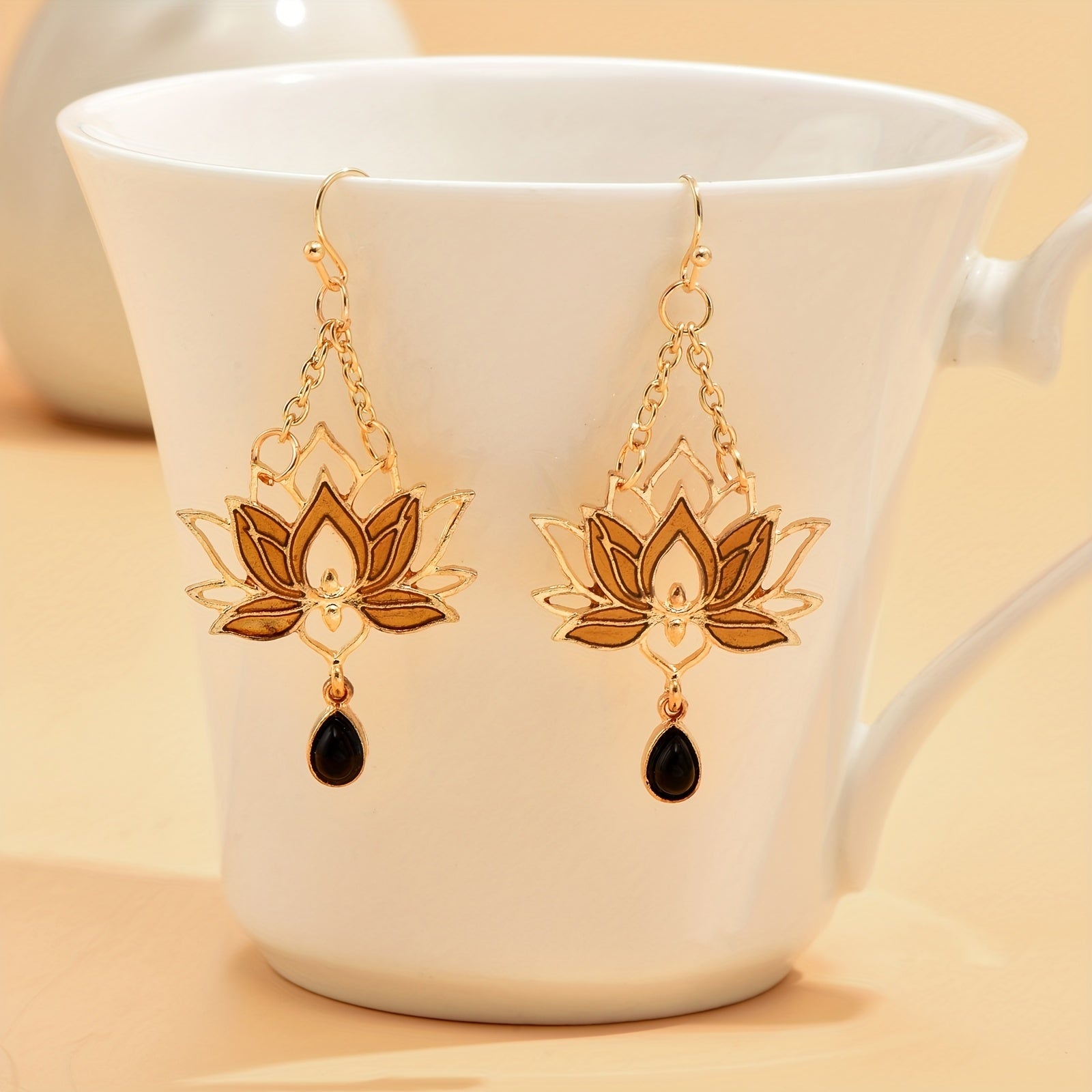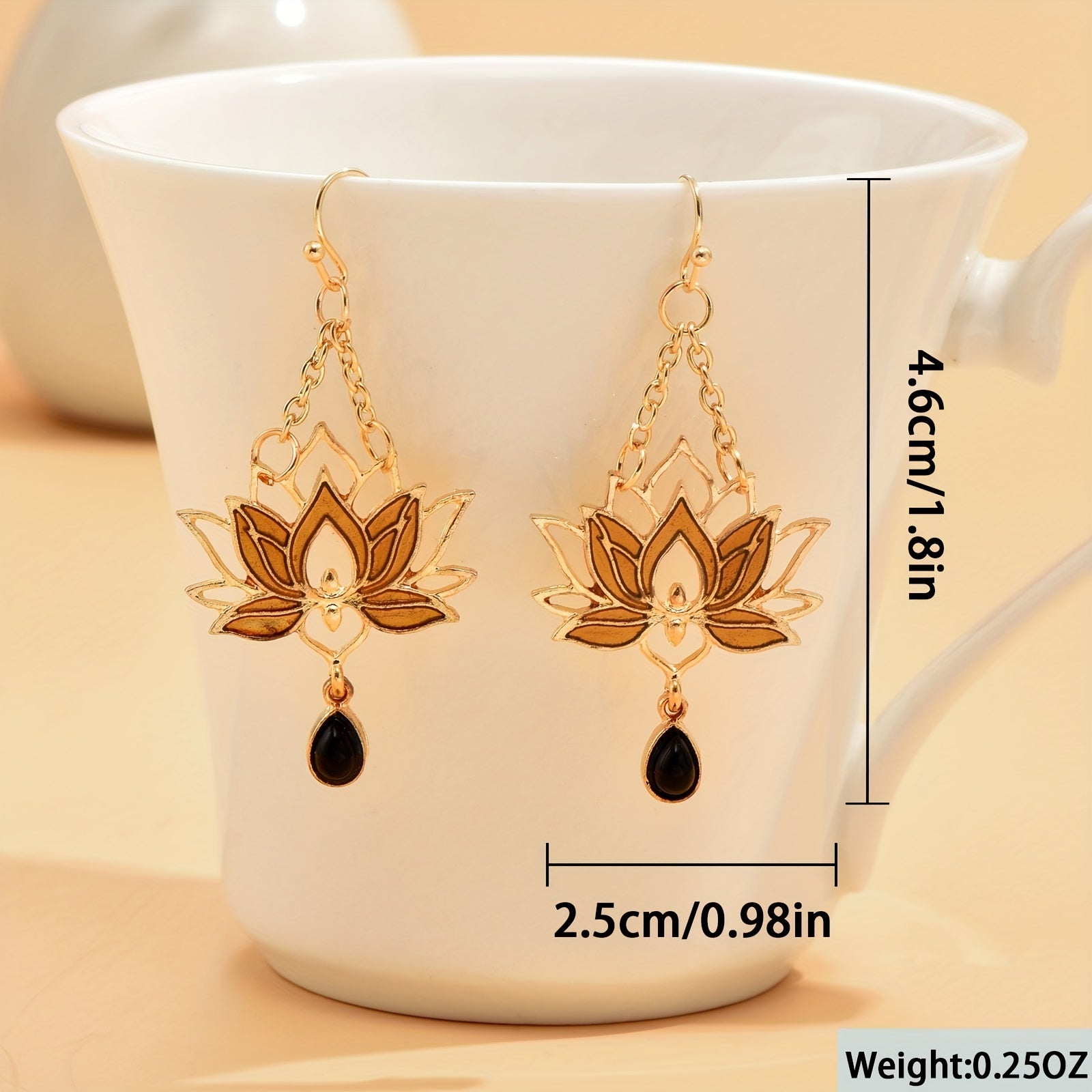 Add a touch of bohemian elegance to your look with these vintage hollow lotus stone drop earrings. Made of zinc alloy, these earrings are perfect for any occasion.