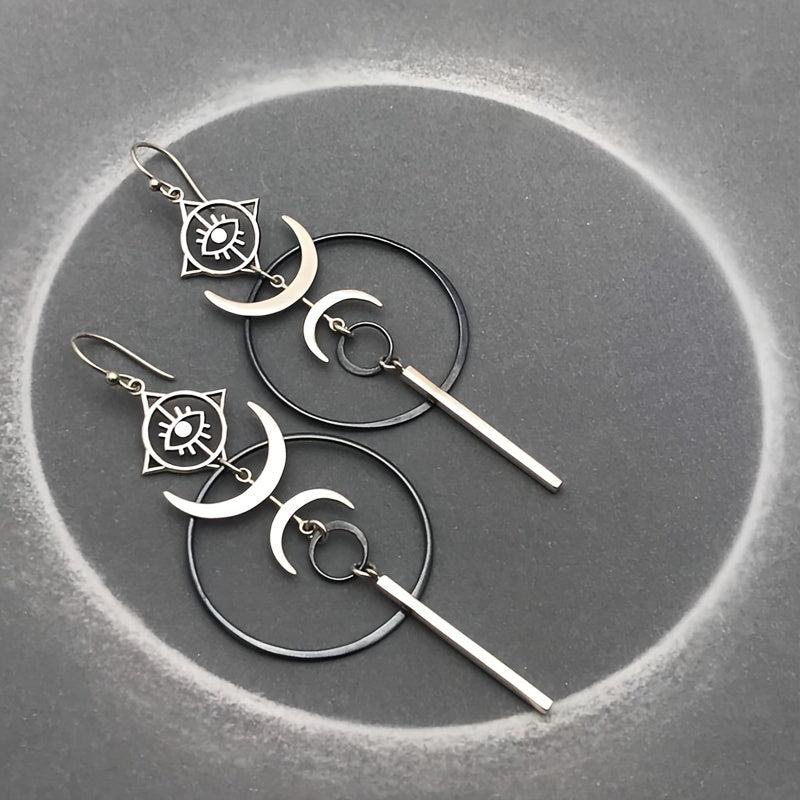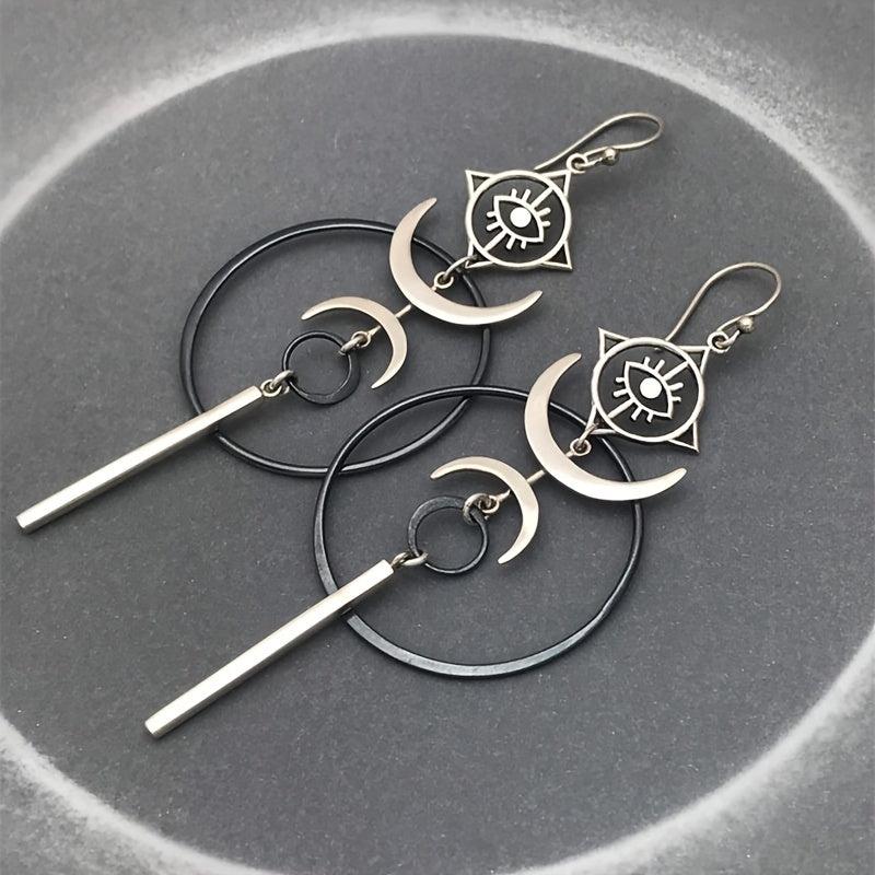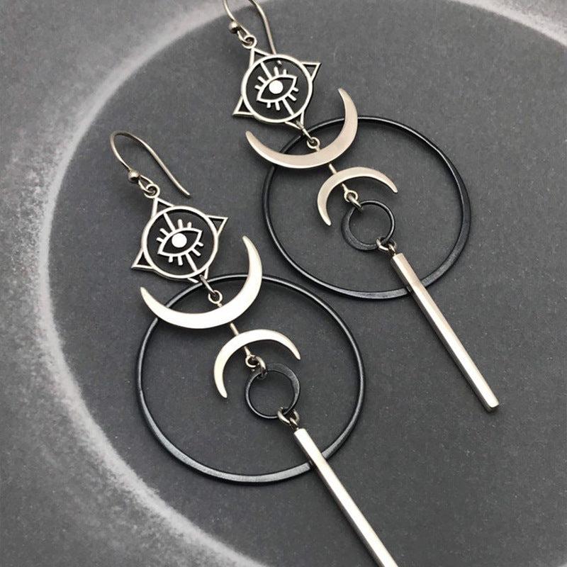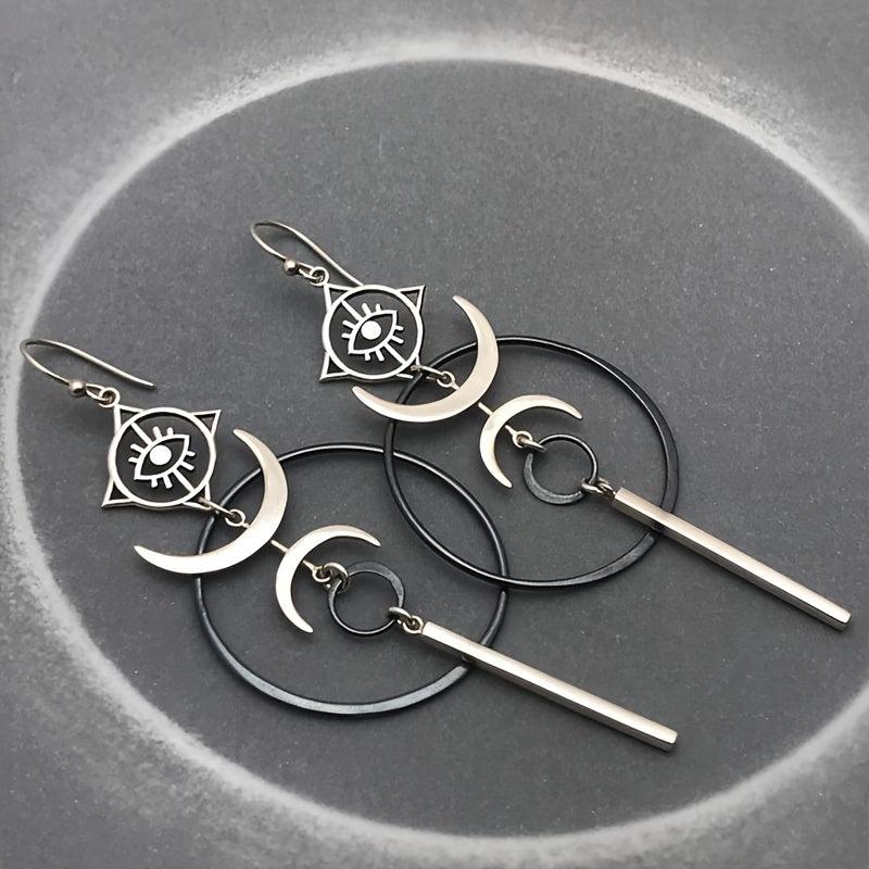 These drop earrings feature an exaggerated evil eye design with a vintage moon theme. Perfect for women and girls who love punk style accessories. Makes a great gift for someone special.