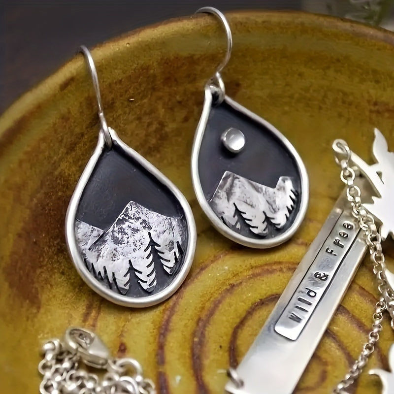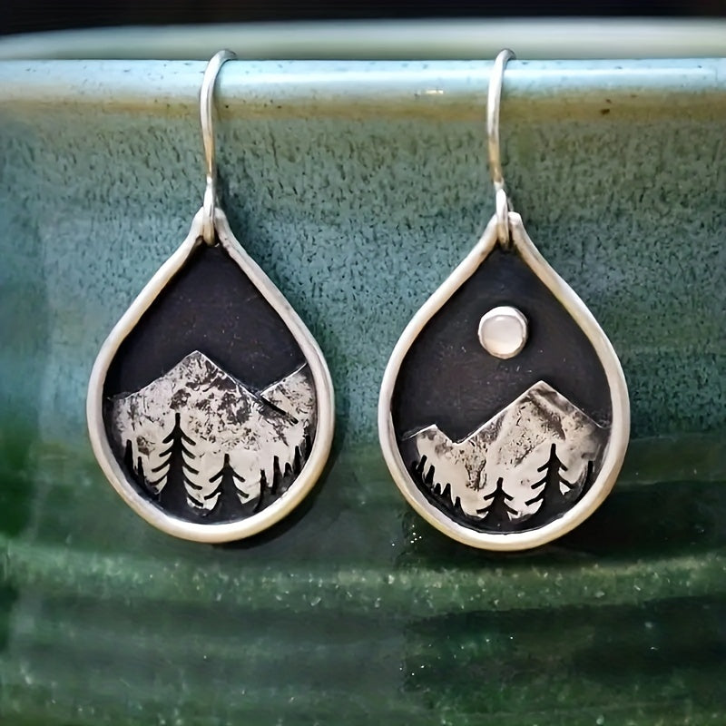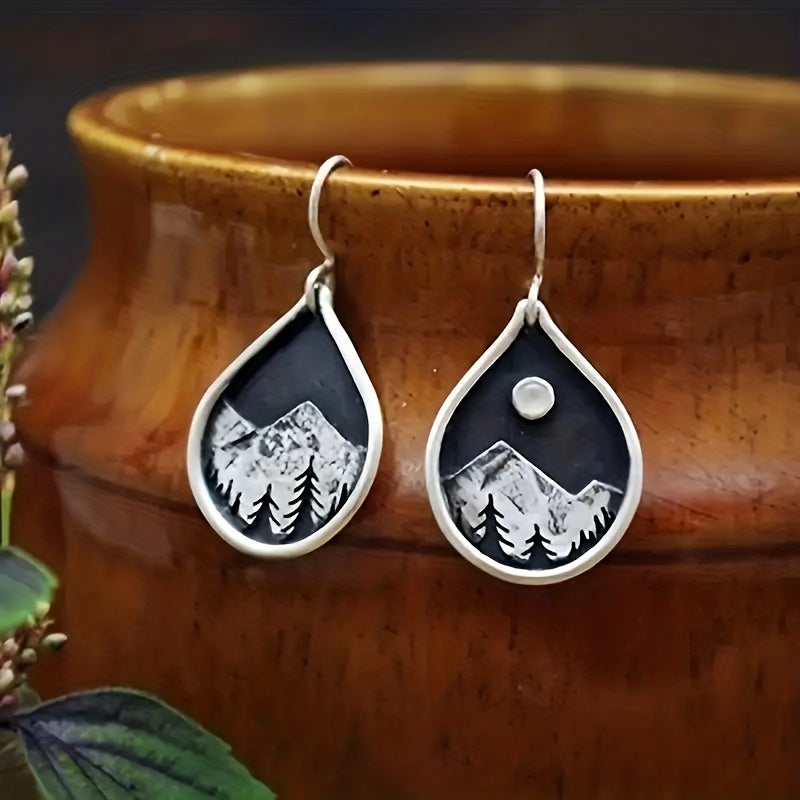 These earrings feature a unique vintage mountain pattern pendant design, making them perfect for parties or casual wear. They also make a great gift for a loved one.