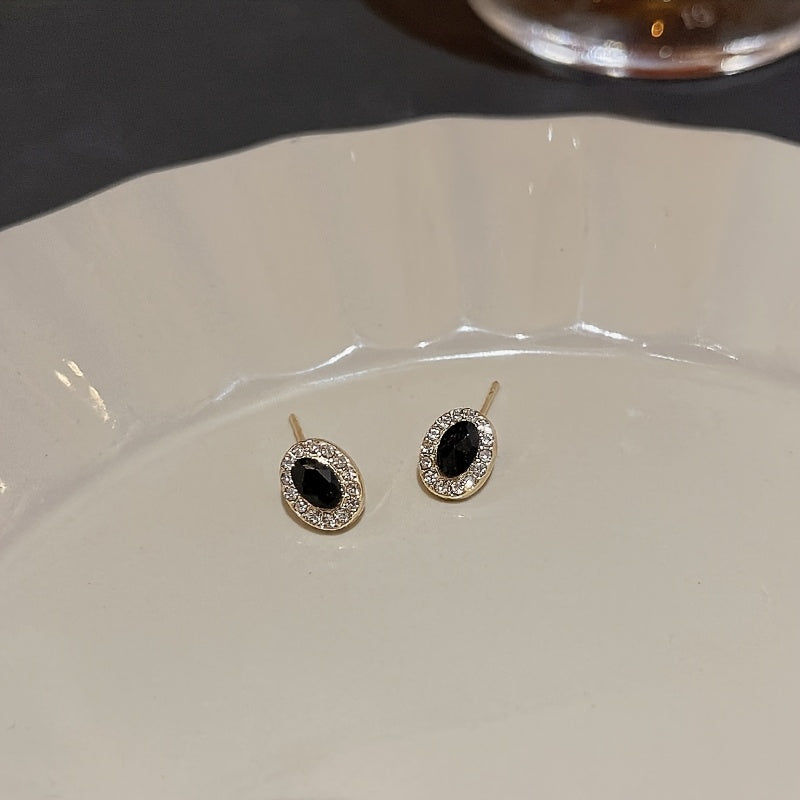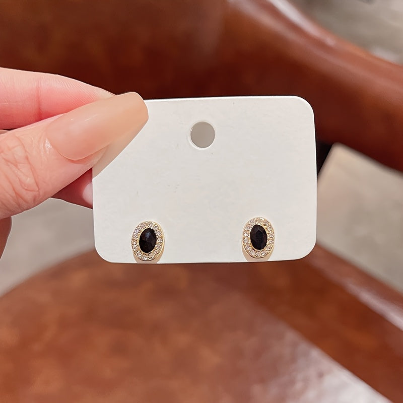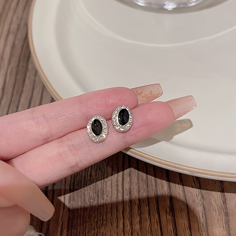These stunning vintage oval rhinestone earrings feature synthetic stones set in alloy with 925 sterling silver posts. Perfect for daily wear or party occasions.
