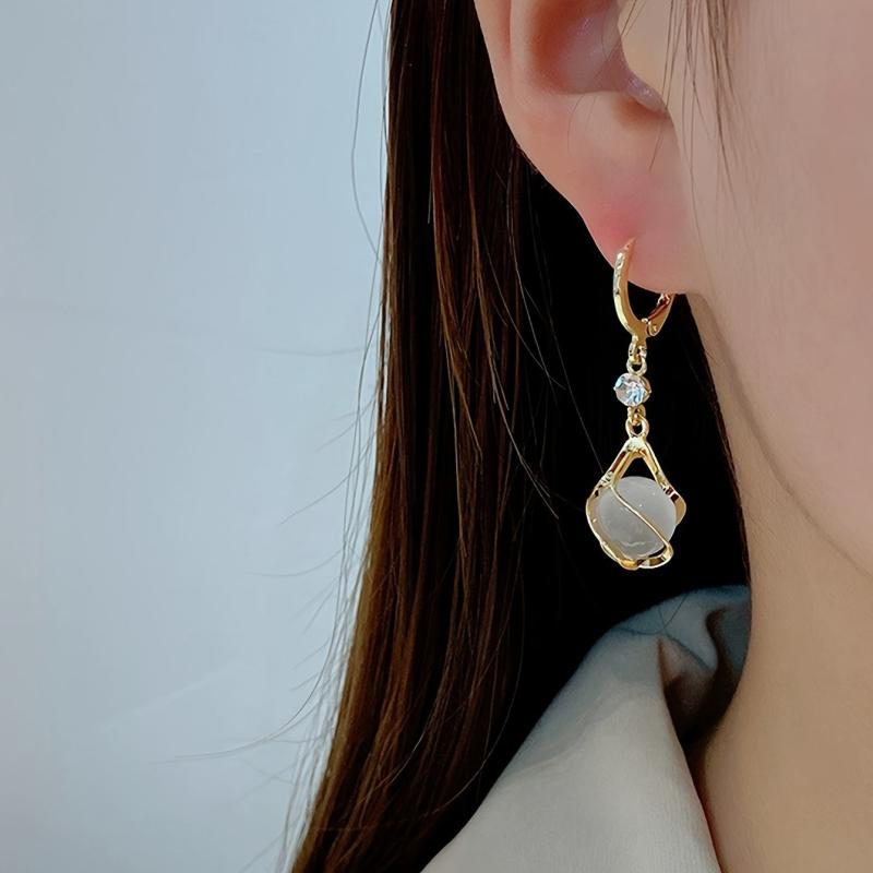 Elegant vintage-inspired rhinestone drop earrings in copper material. Perfect for parties and special occasions.