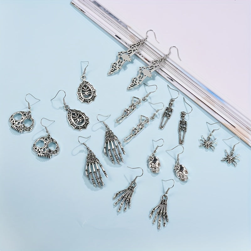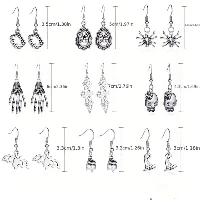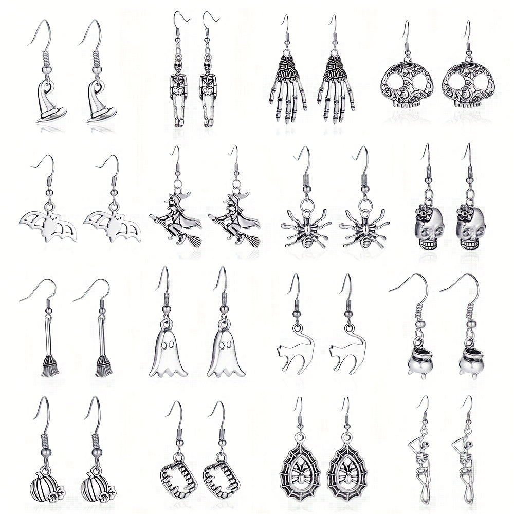 These creative vintage earrings are perfect for Halloween lovers. Made of silver plated alloy, they feature various spooky elements like skulls, bats, spiders, and pumpkins. A great gift for someone who enjoys unique jewelry.