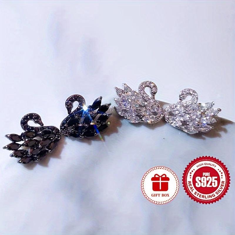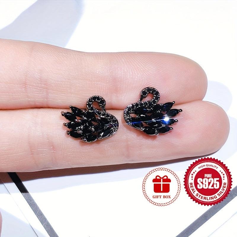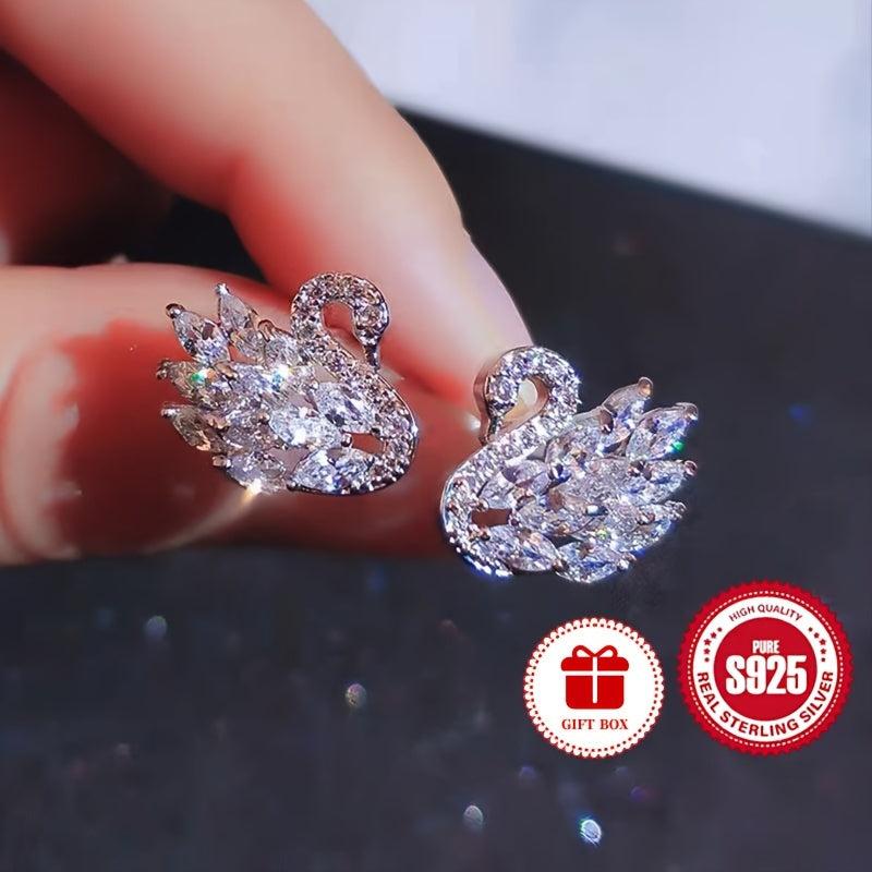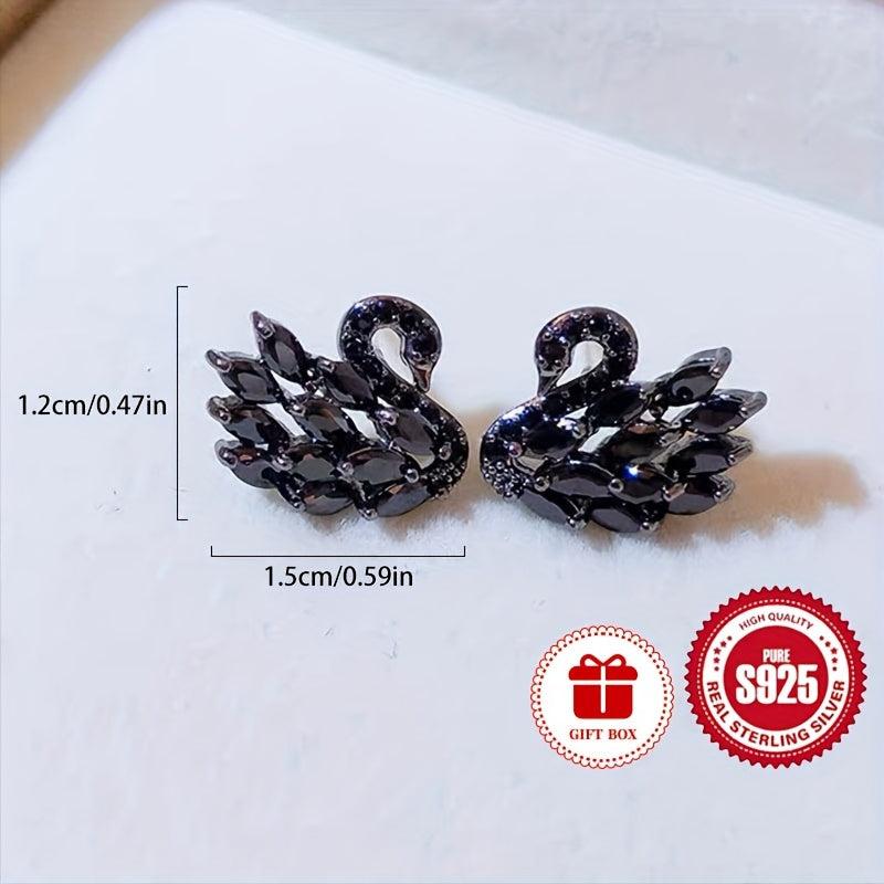 These vintage-style stud earrings feature a swan design made of 925 sterling silver with 18K gold plating and synthetic cubic zirconia. Hypoallergenic and perfect for everyday wear.