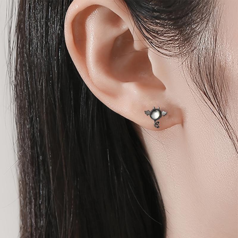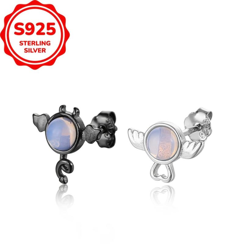 Sterling Silver 925 earrings featuring a vintage style with angels design, adorned with CZ stones. Perfect for parties, music events and Halloween. All-season accessory.