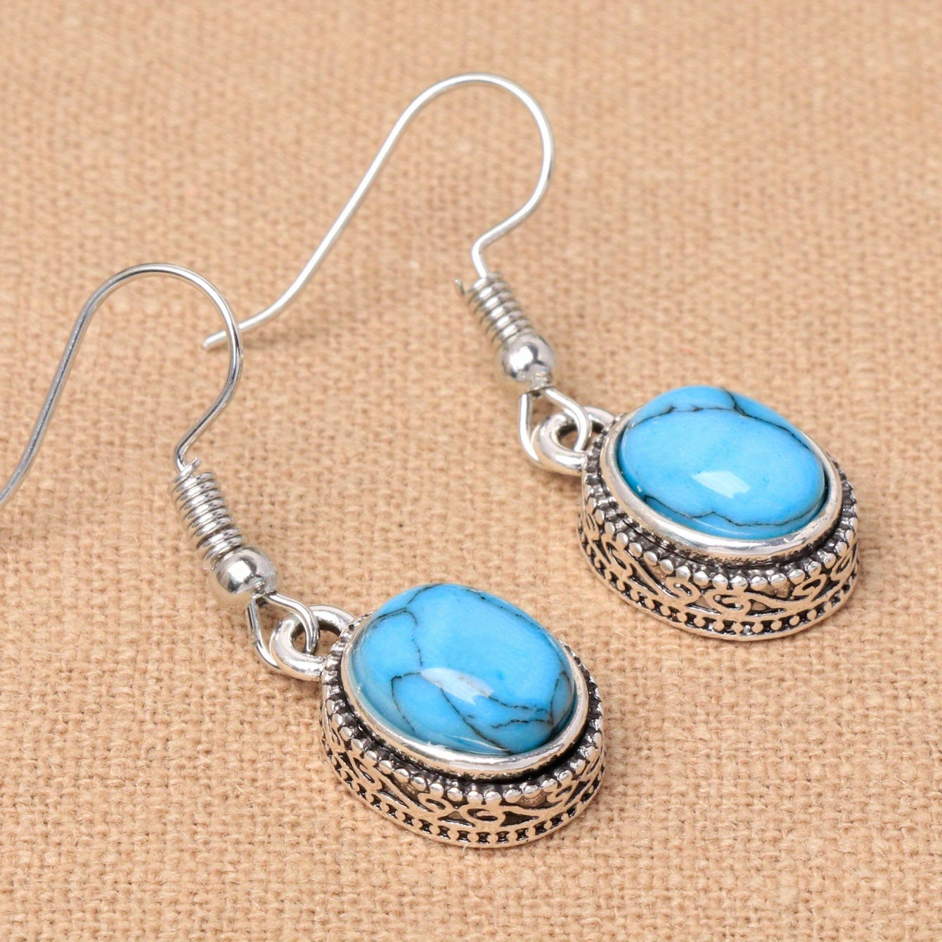 Add a touch of elegance to your look with these delicate lapis lazuli dangle earrings. Perfect for women who appreciate vintage style jewelry.