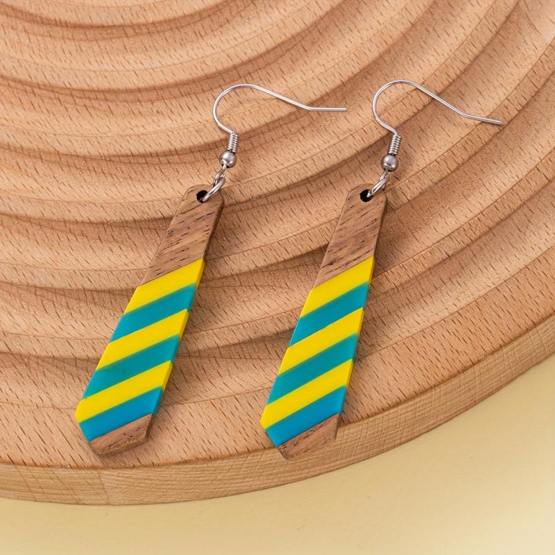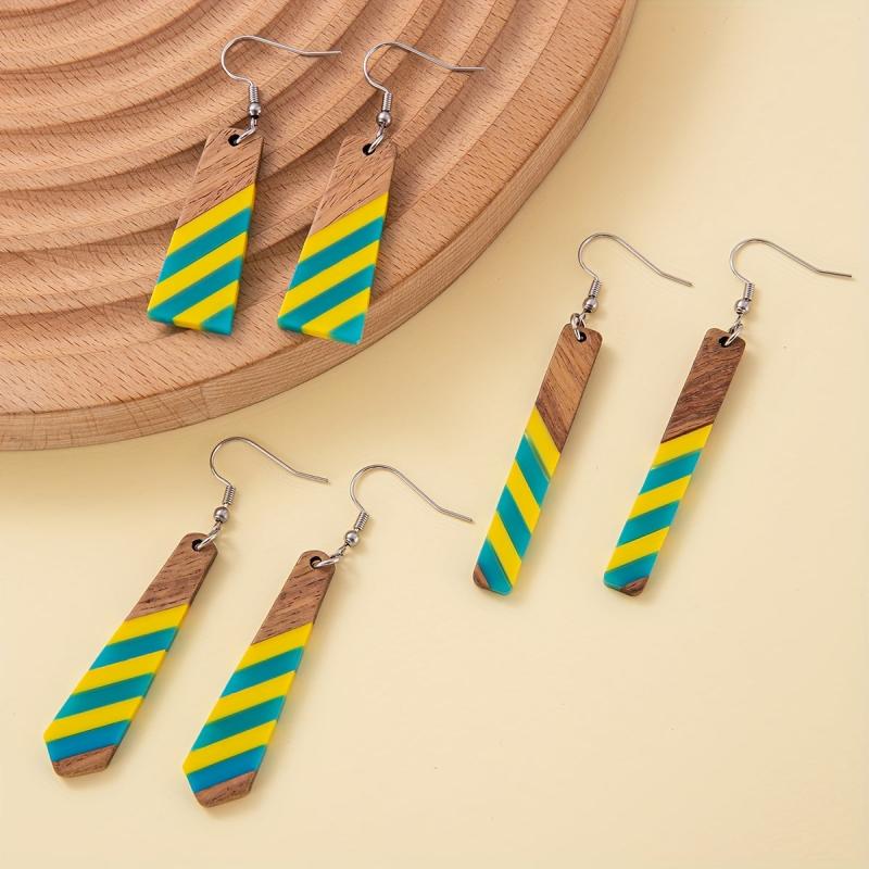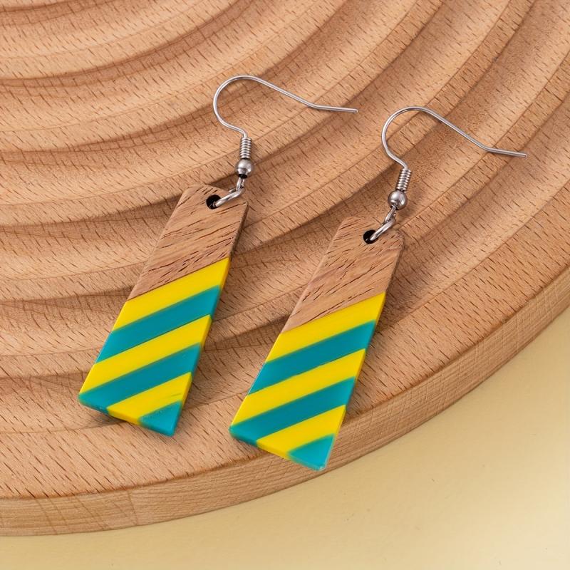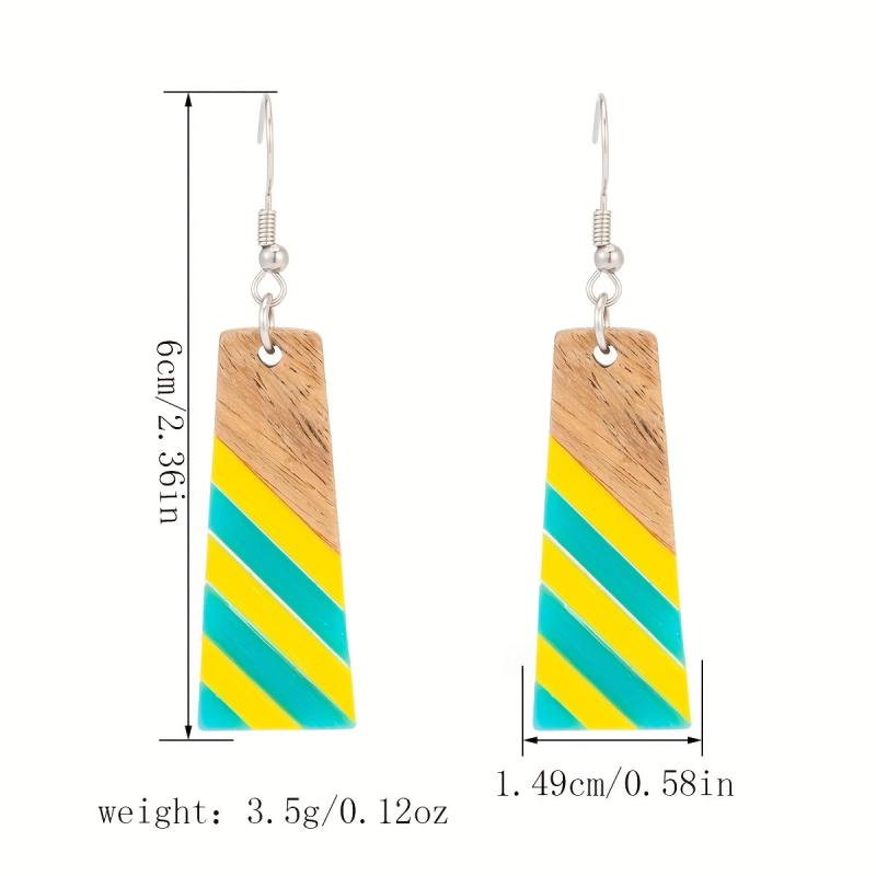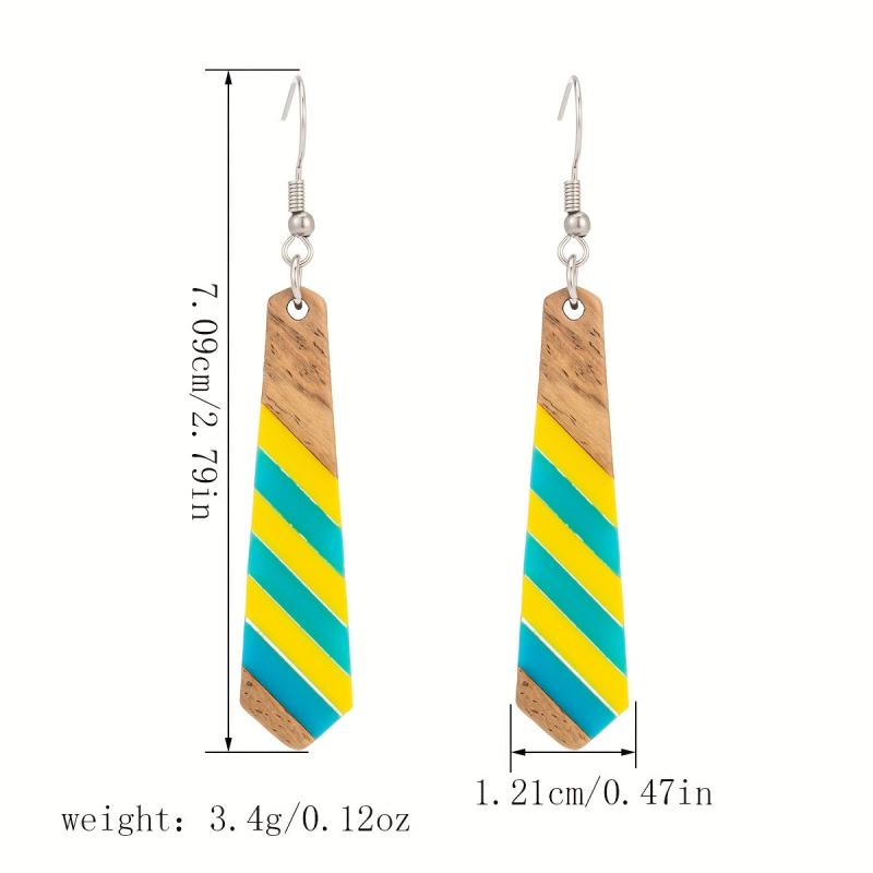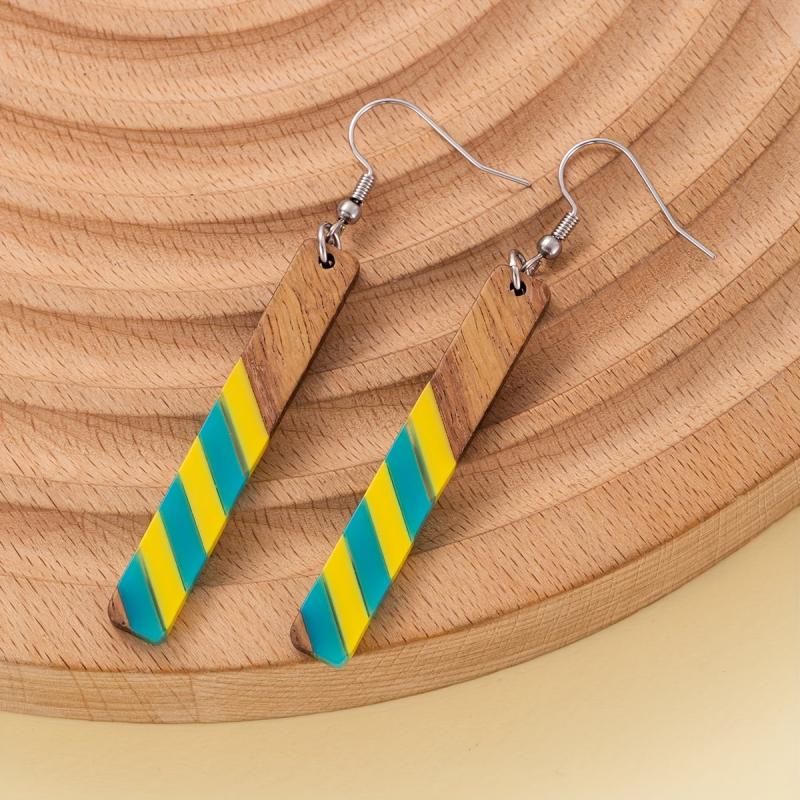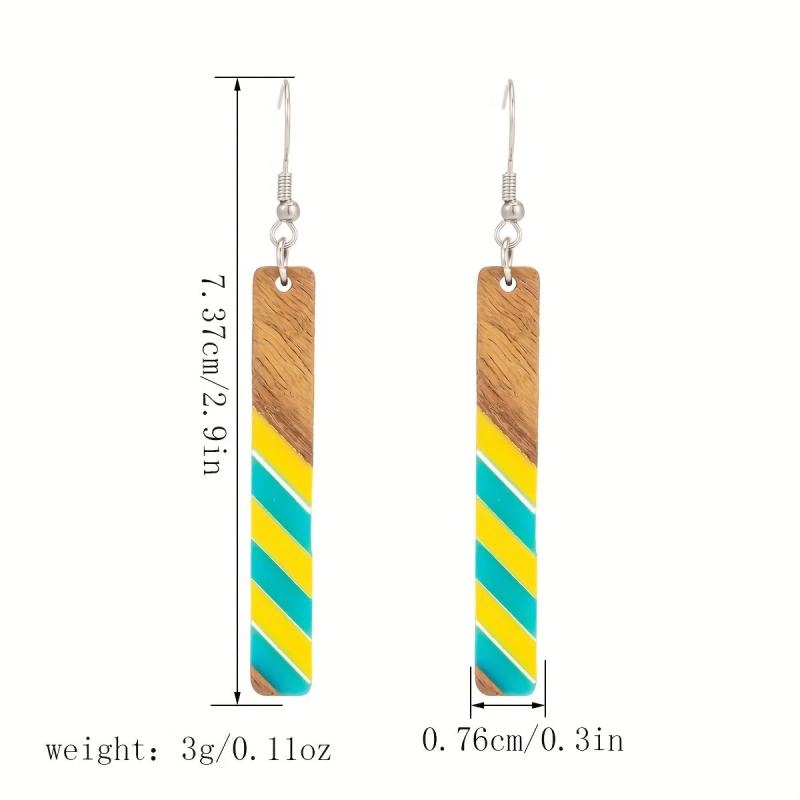 These unique earrings are a perfect gift for Valentine's Day or any special occasion. Featuring a long fringe design with wood and resin accents, they exude a vintage charm.
