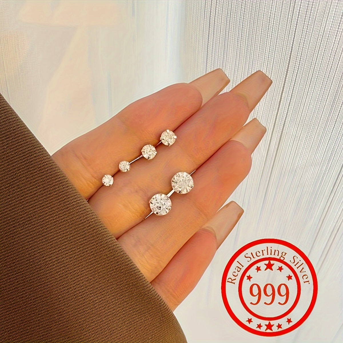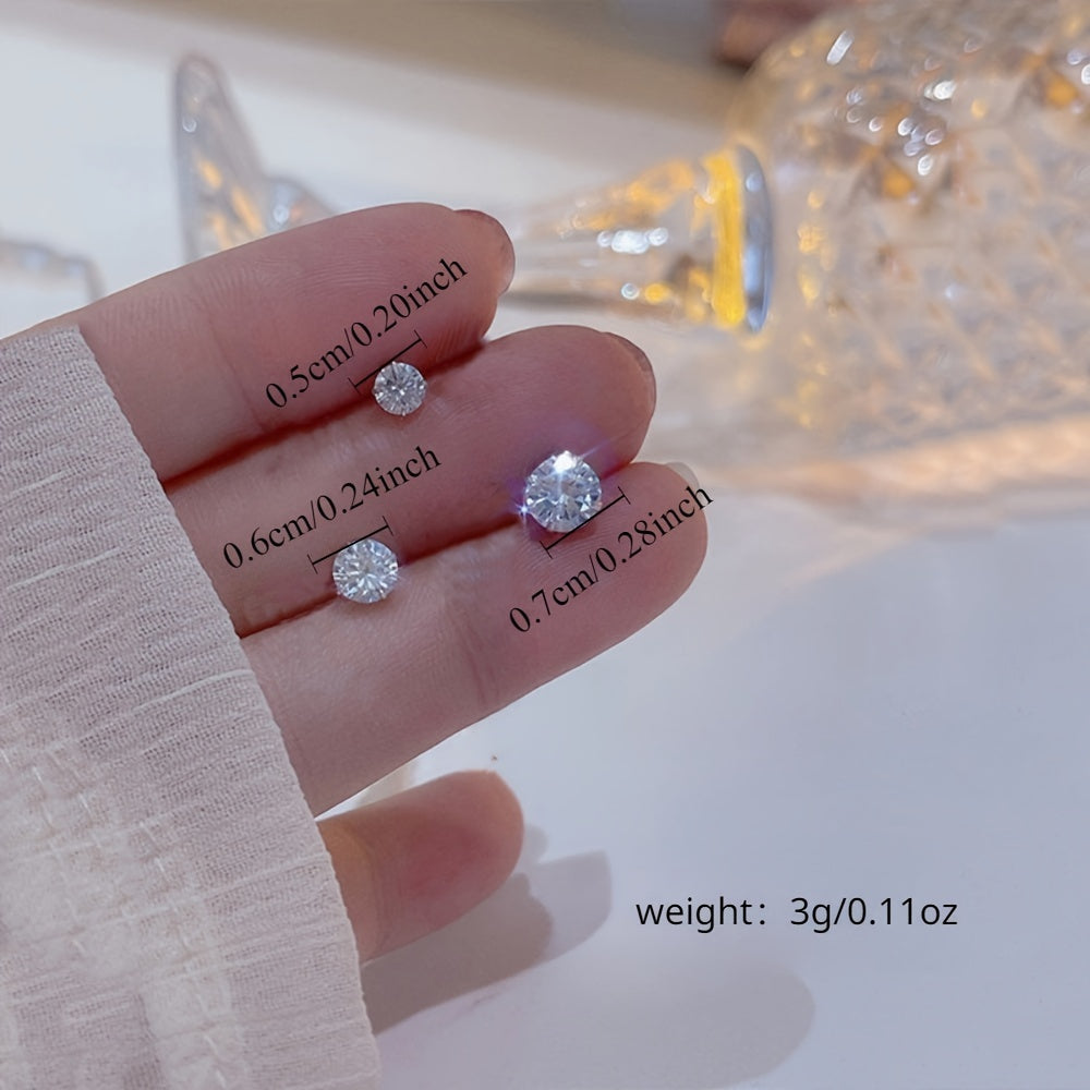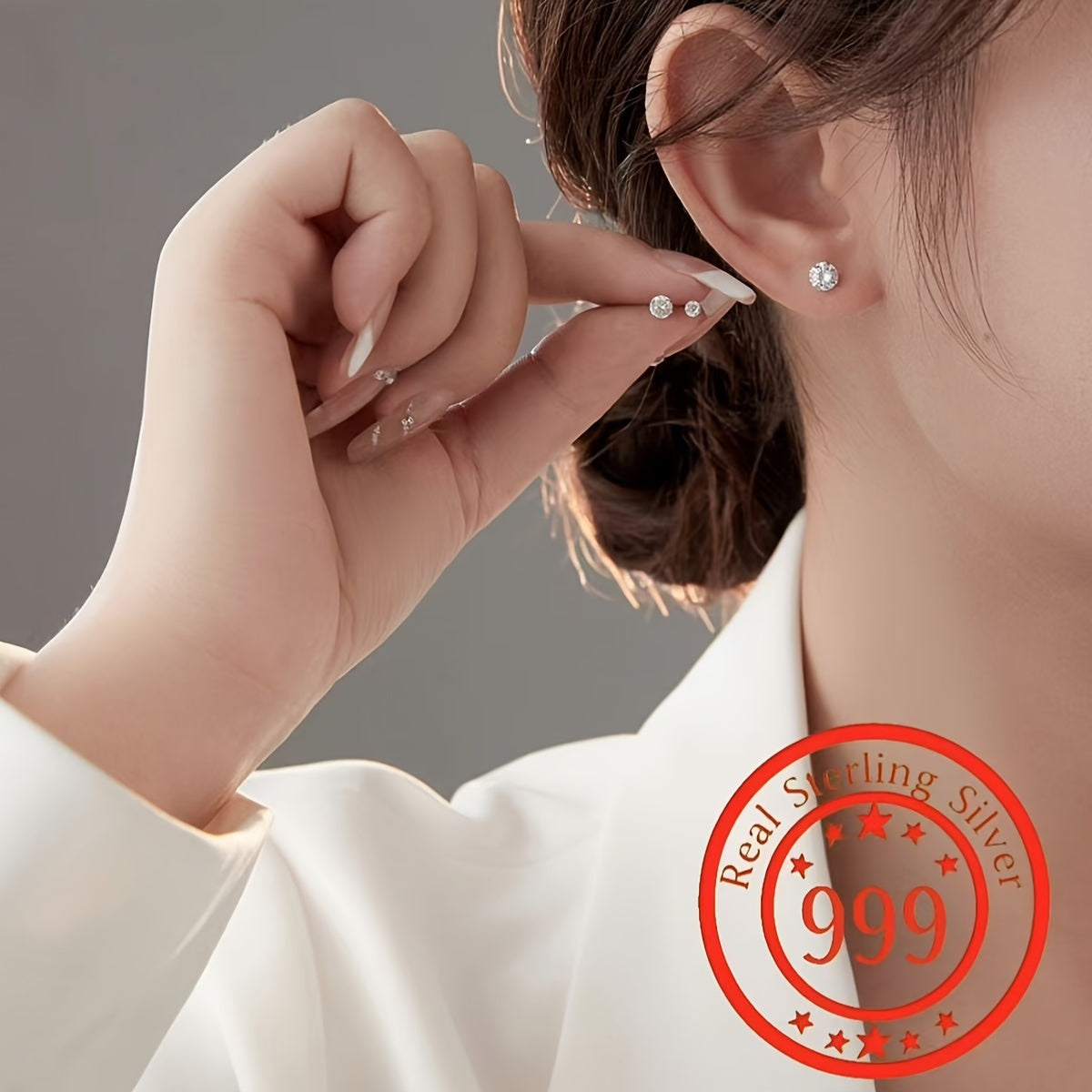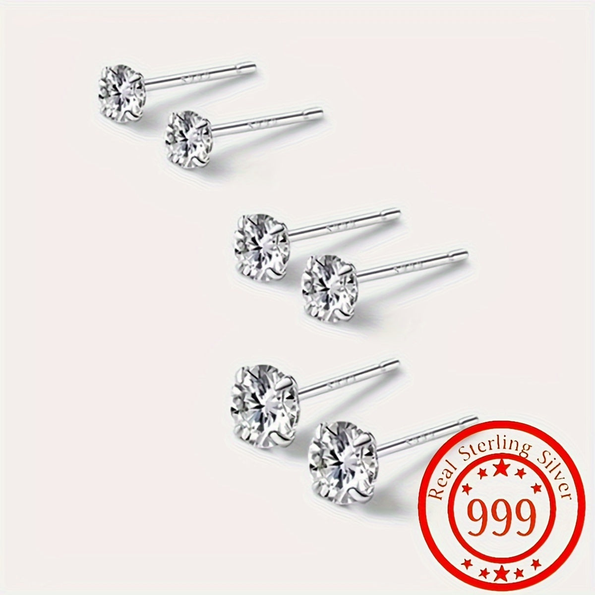 Add a touch of elegance with this set of 3 sterling silver stud earrings featuring synthetic zirconia. A perfect choice for everyday wear or as a December birthstone jewelry. No plating, just pure silver.