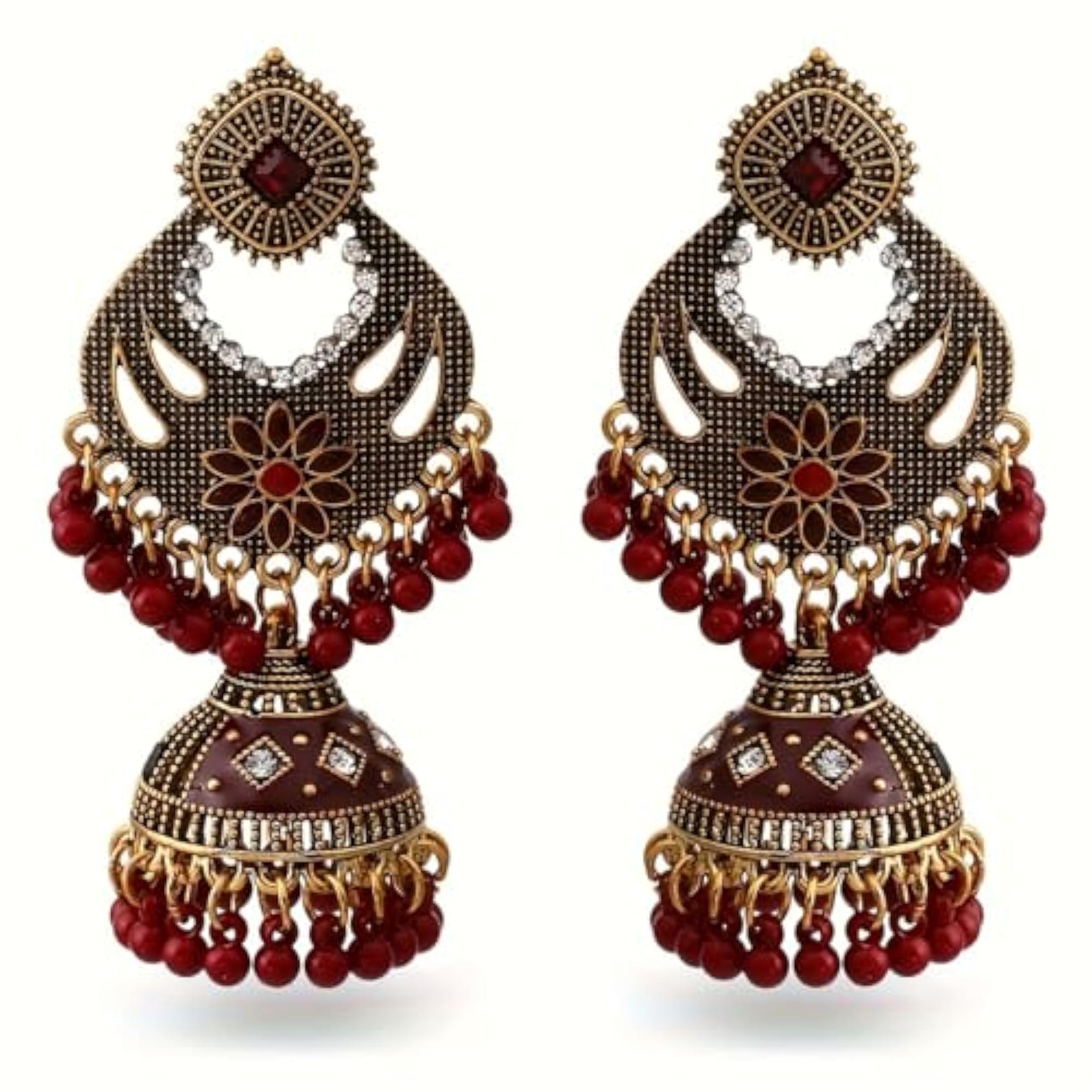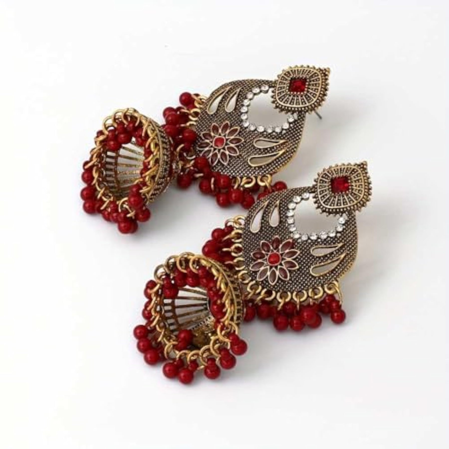 Enhance your look with these oxidized traditional dangle drop earrings featuring tassel beads. Embrace vintage style with these unique earrings.