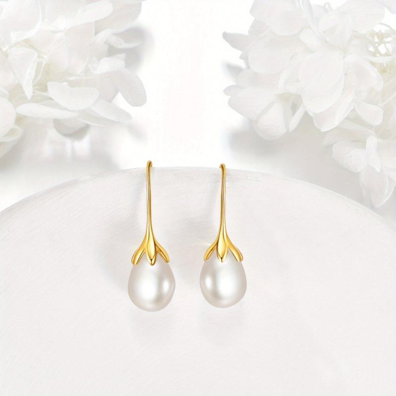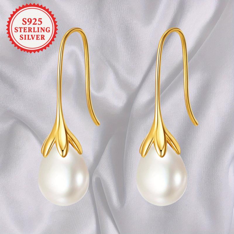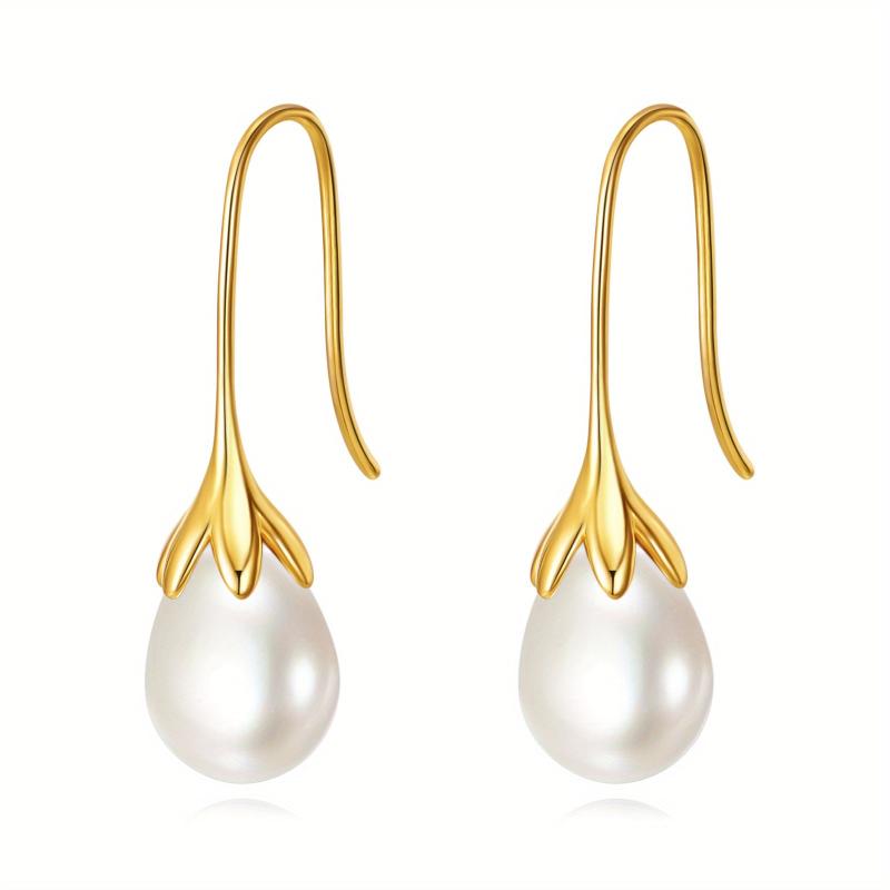 Elegant teardrop pearl earrings made of sterling silver, perfect for a birthday gift. Vintage design adds a touch of sophistication to any outfit.