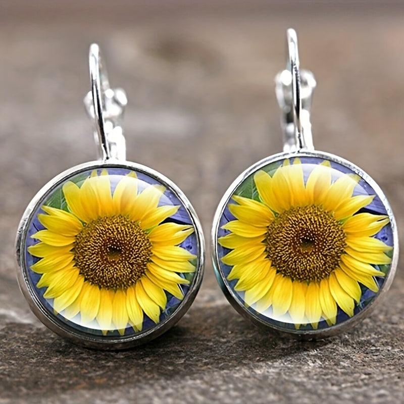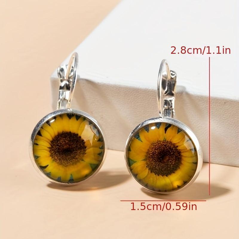 Add a touch of vintage elegance to your outfit with these stunning glass earrings featuring sunflower, tree, and butterfly patterns. The perfect accessory for any occasion.