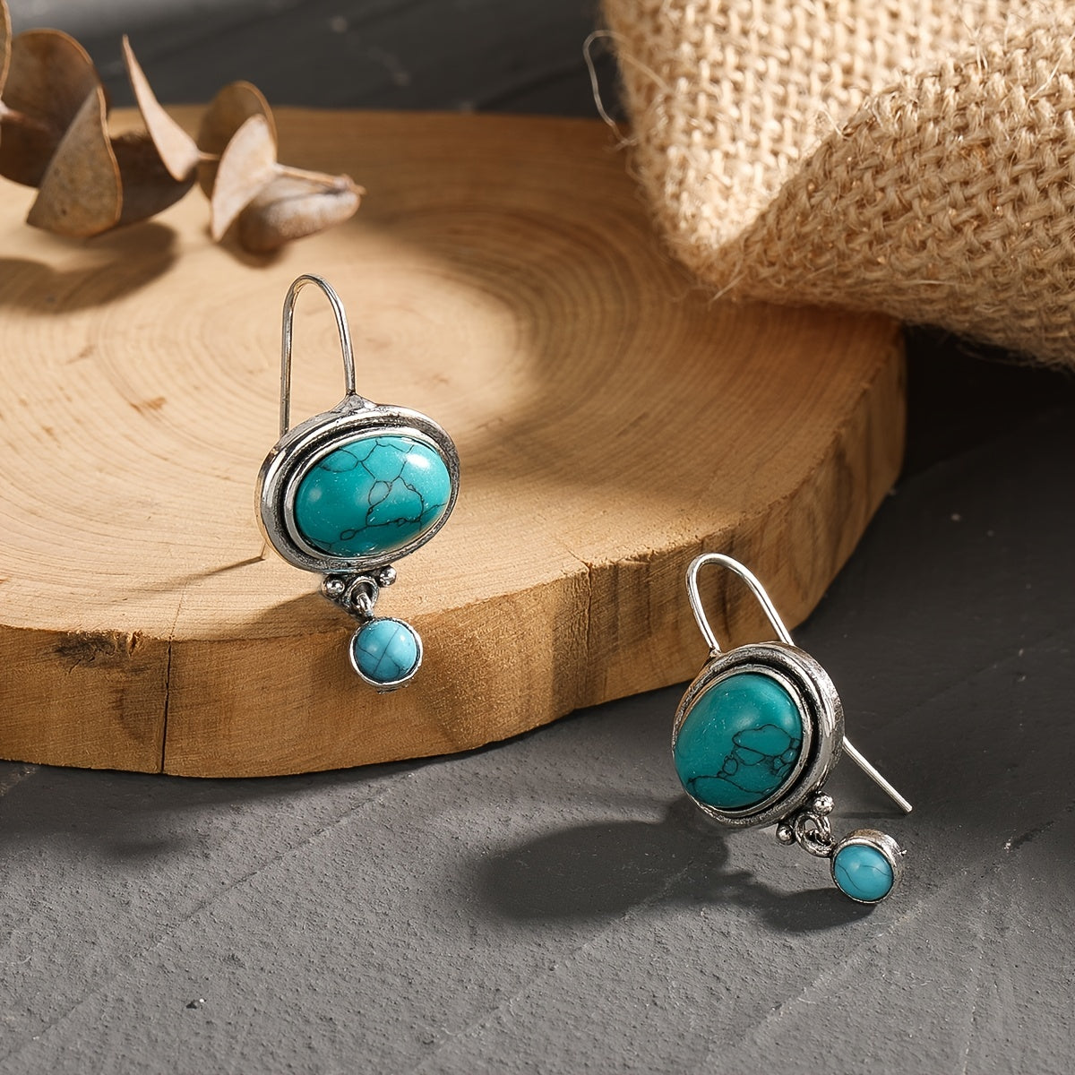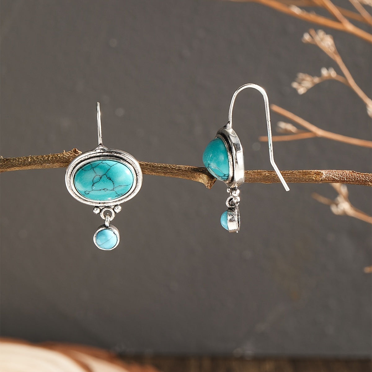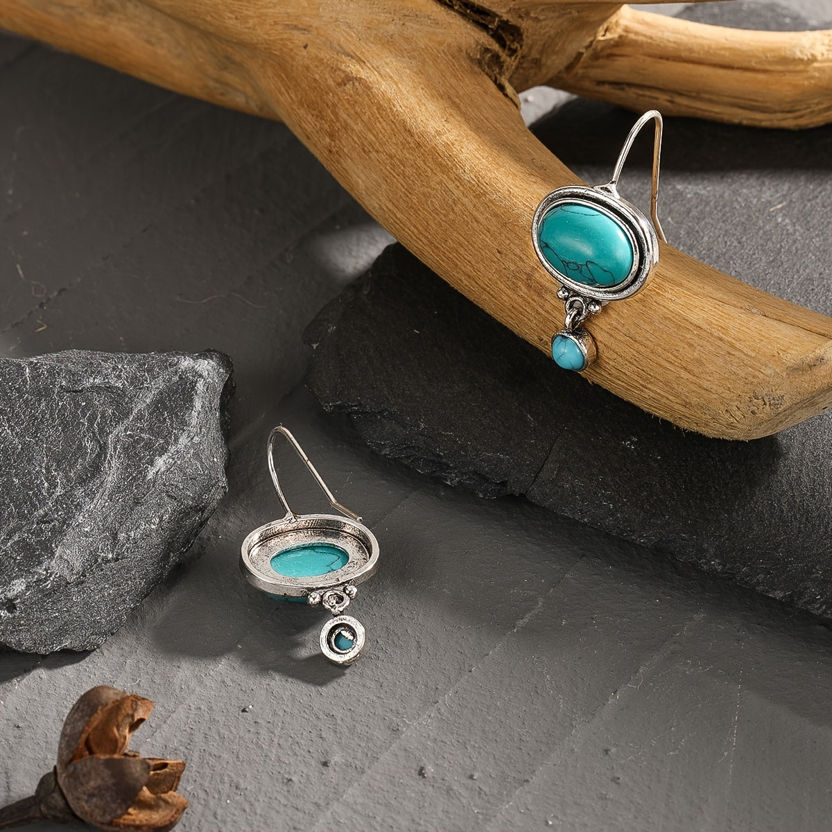 These vintage boho earrings feature turquoise stones on silver plated dangles. A perfect fine jewelry gift for women and girls.