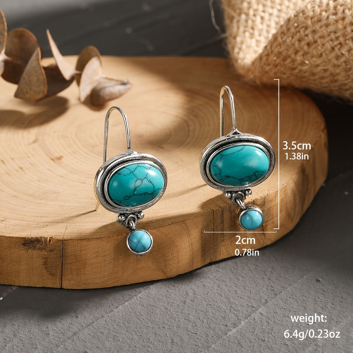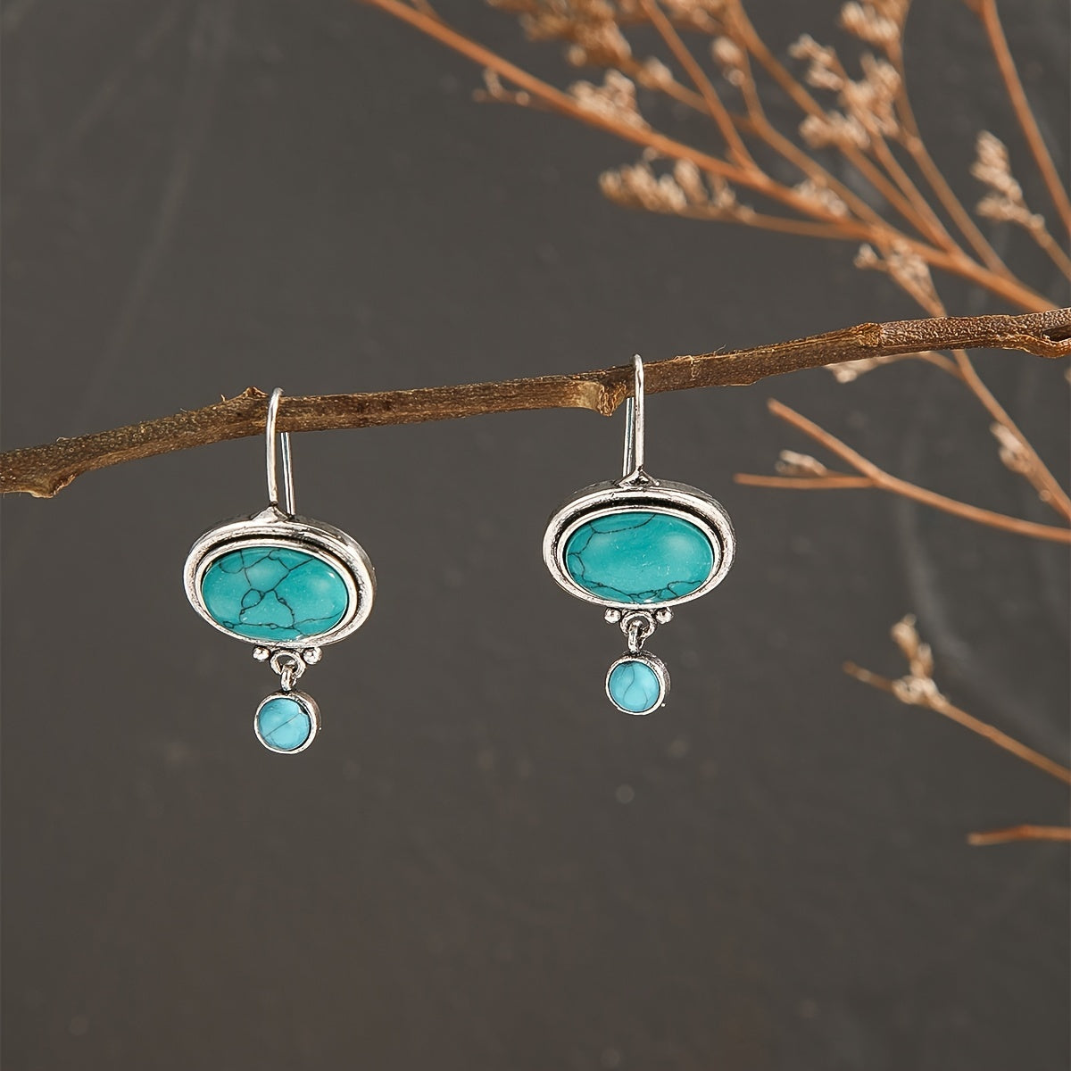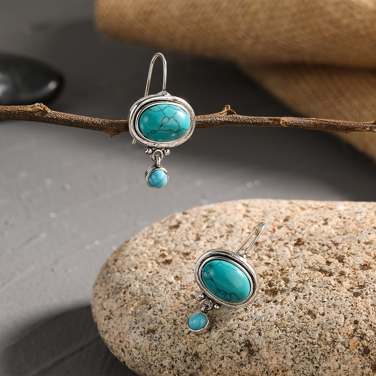 These vintage boho earrings feature turquoise stones on silver plated dangles. A perfect fine jewelry gift for women and girls.