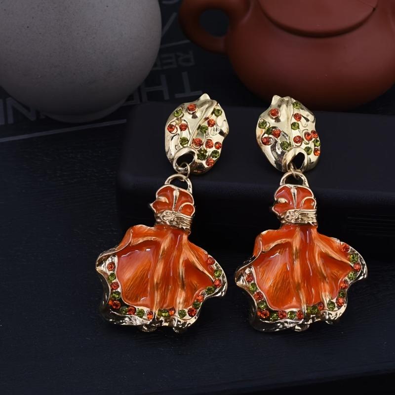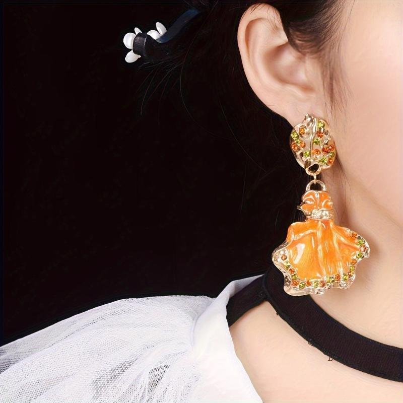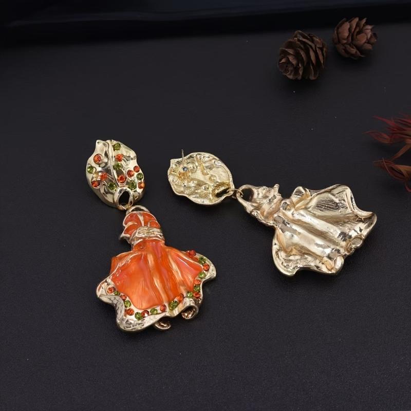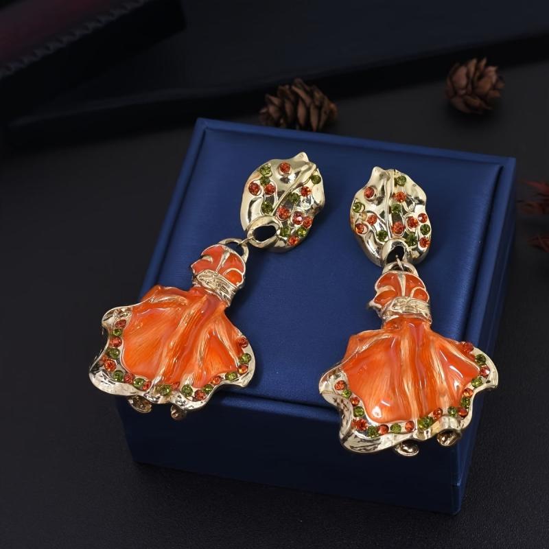 Add a touch of vintage charm to your outfit with these vacation-inspired dangle earrings. Made of silver-plated alloy with 925 silver posts, these earrings feature a red skirt design embellished with gemstones. Perfect for all seasons.