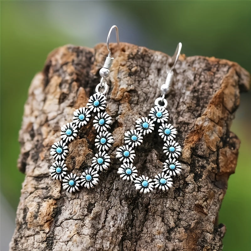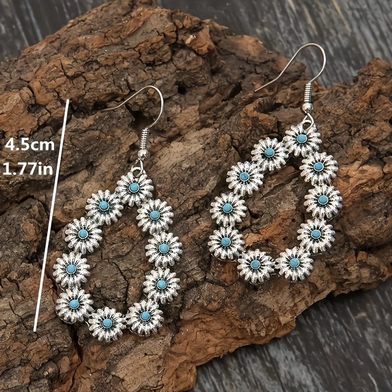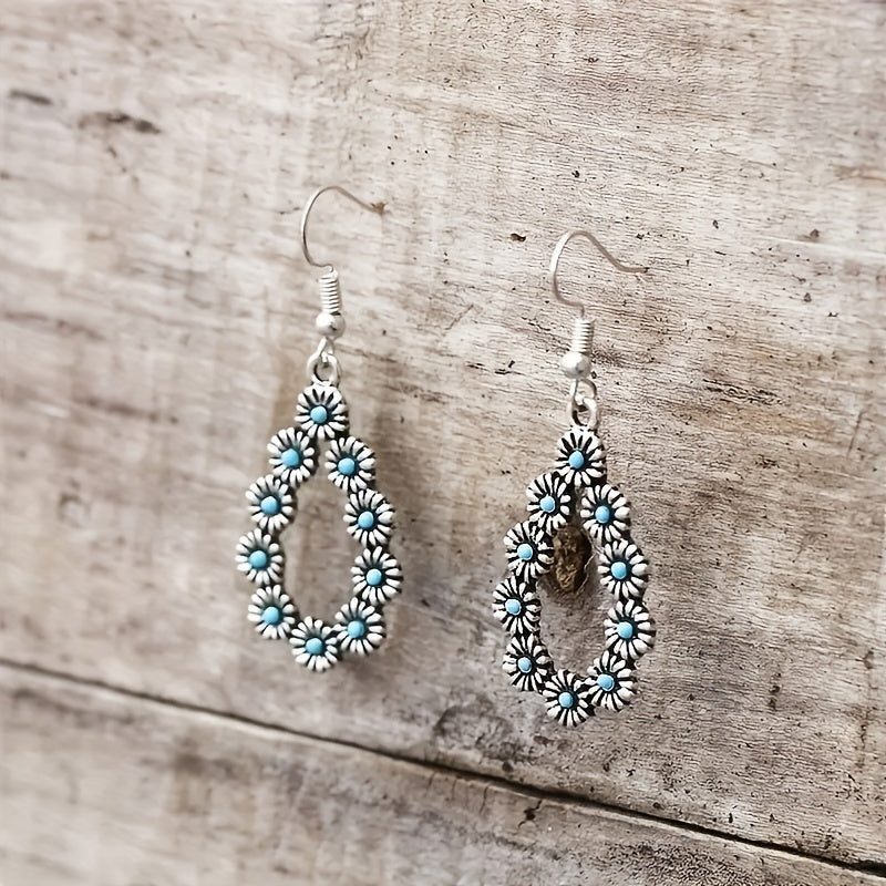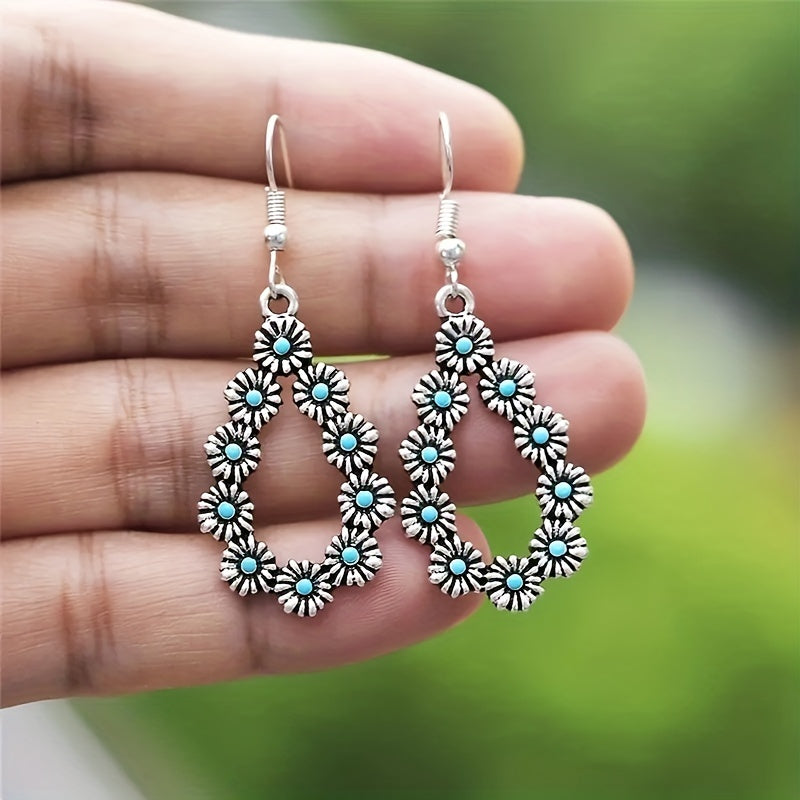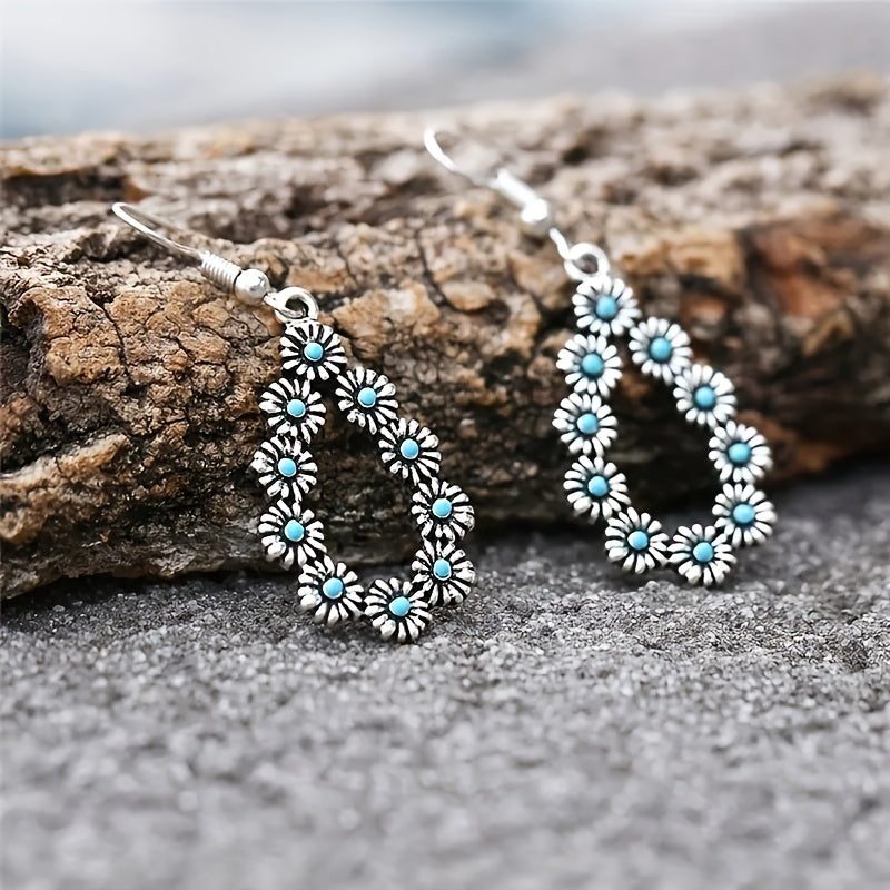 Add a touch of vintage charm with these water drop daisy flower turquoise earrings. Perfect for daily wear or special occasions.