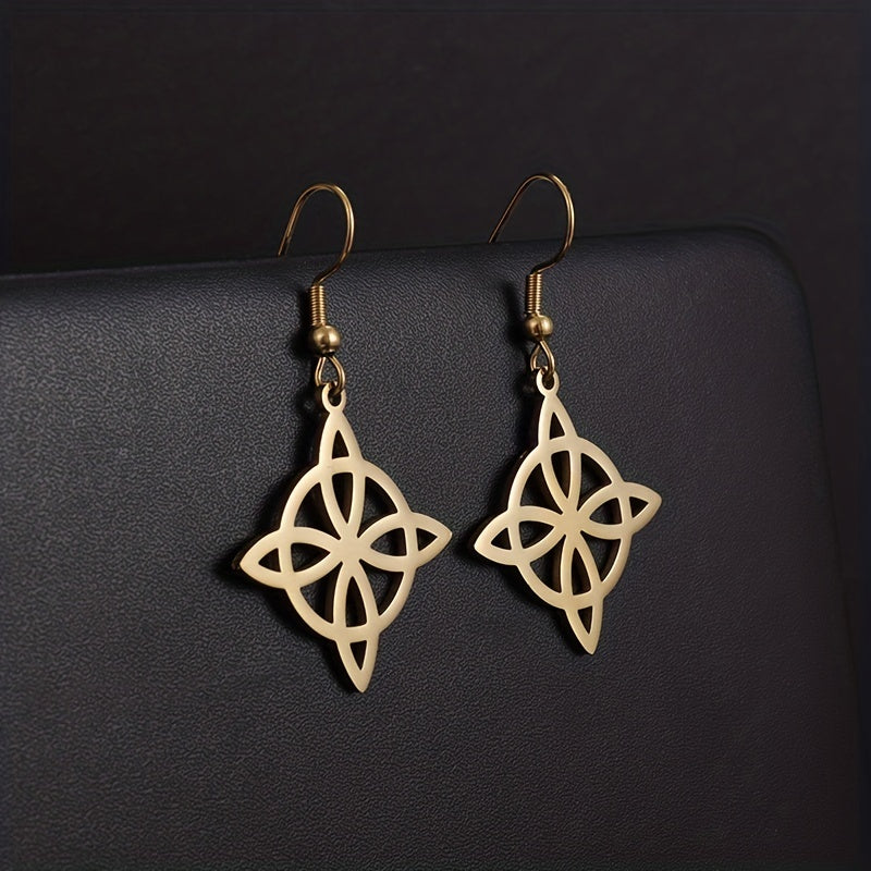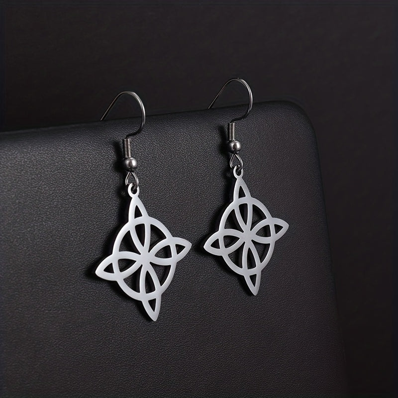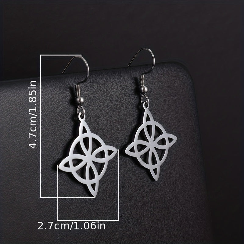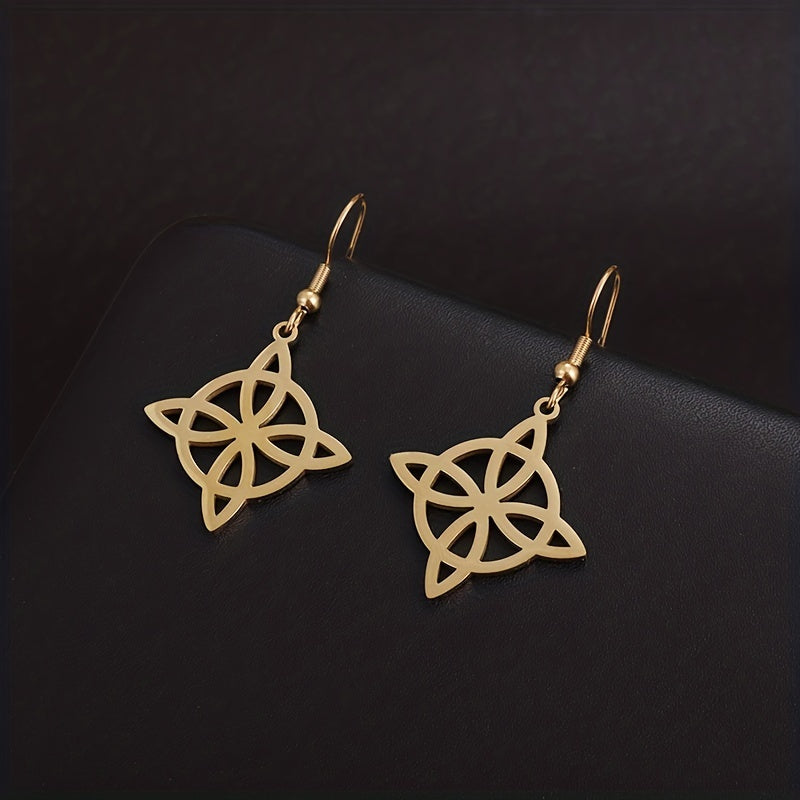 These delicate Witch Knot earrings are made of stainless steel, perfect for women and girls with sensitive skin. They feature a geometric design inspired by Irish folklore.
