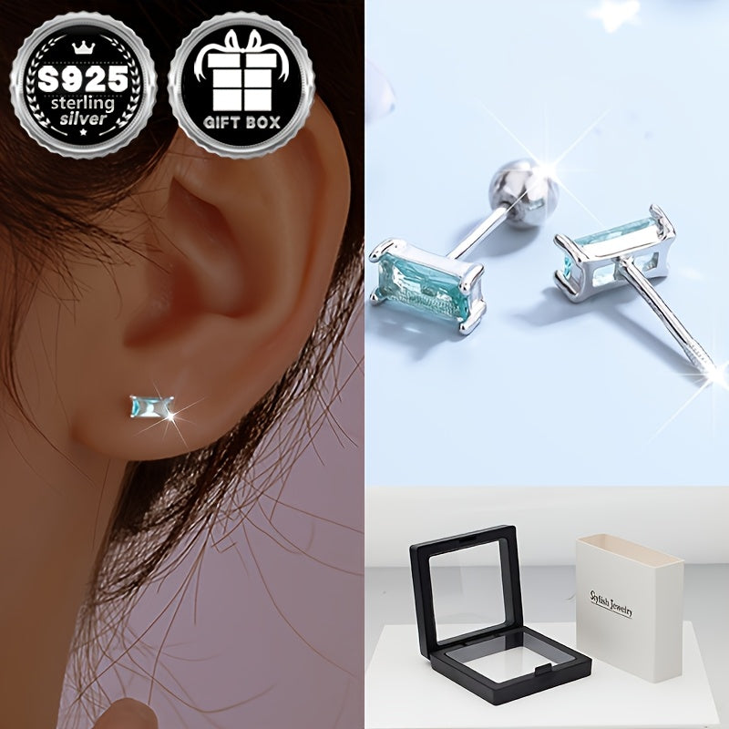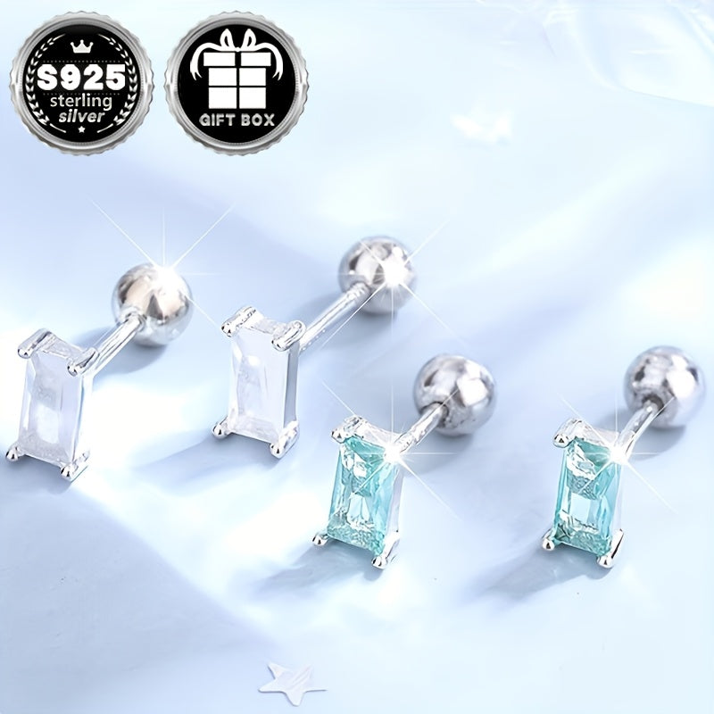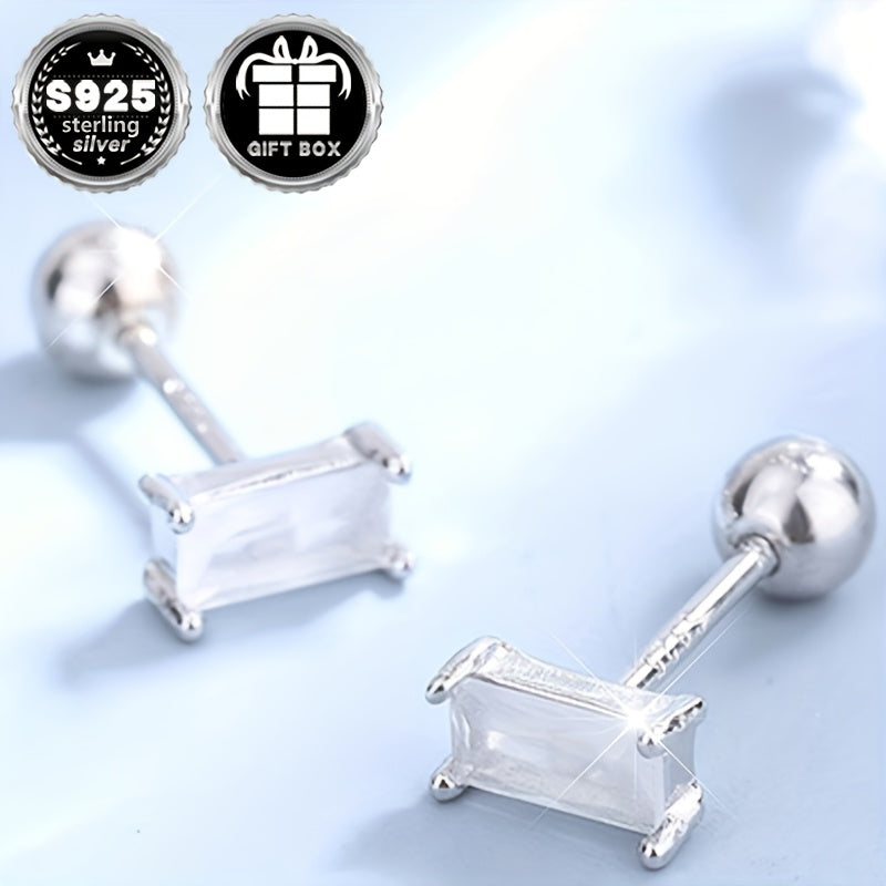 These classic silver earrings feature synthetic zirconia inlays for a touch of elegance. Ideal for daily wear, parties, and banquets.