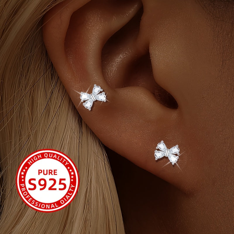 These adorable ballet bow earrings are perfect for daily wear or vacation. They feature synthetic zirconia inlay and weigh just 0.7g. Made from high-quality 925 silver.