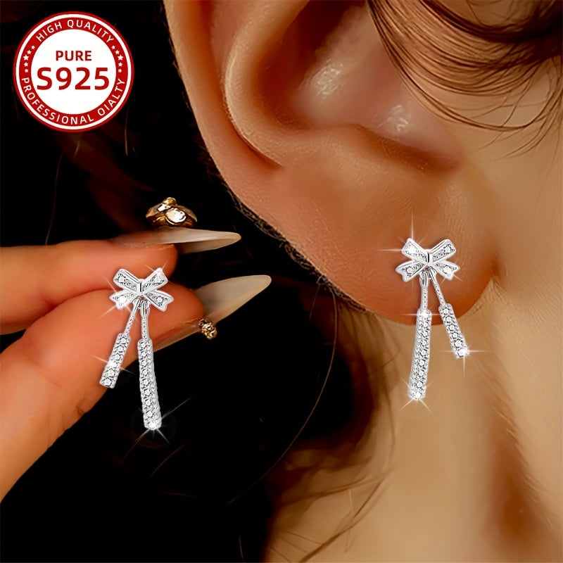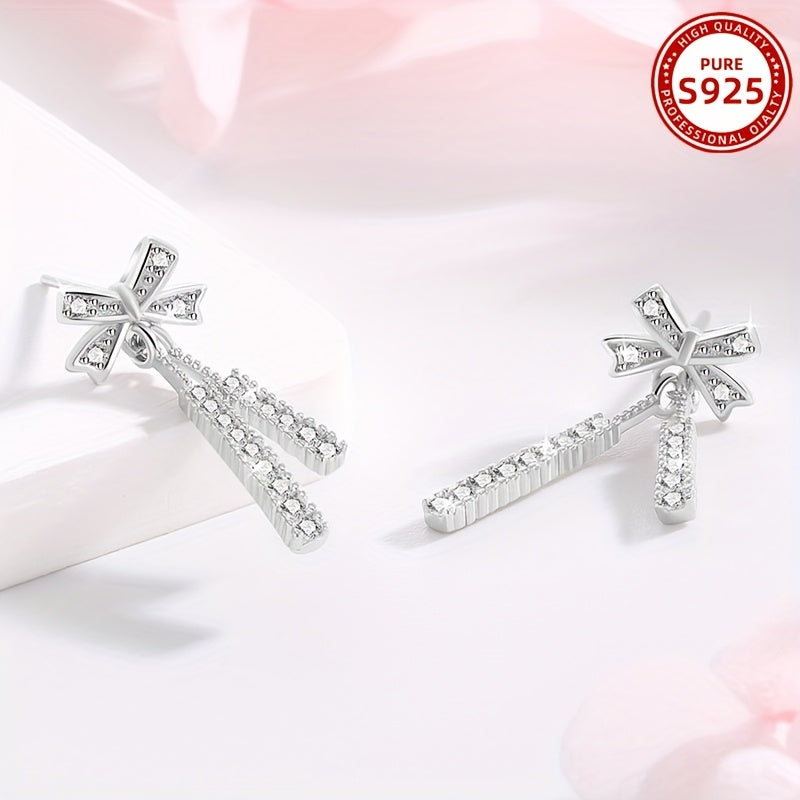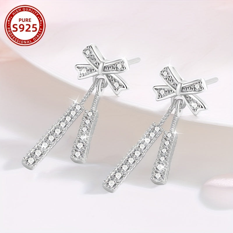 Add a touch of elegance with these silver earrings featuring bow and tassel design. Perfect for daily wear, parties, or vacation.
