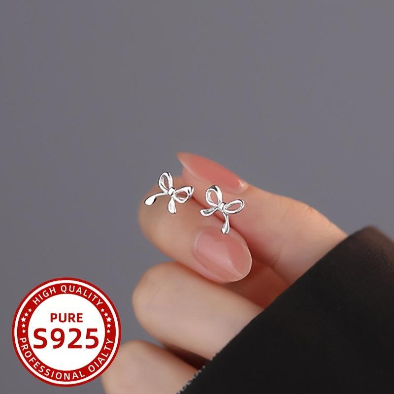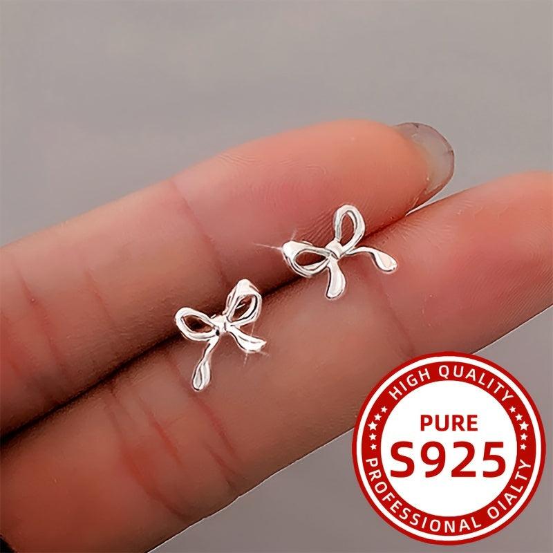 These stylish bow earrings in 925 silver are perfect for daily wear, parties, and vacations.