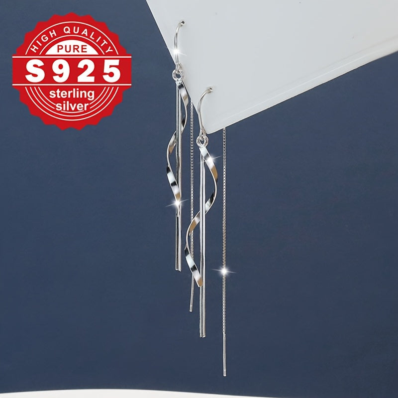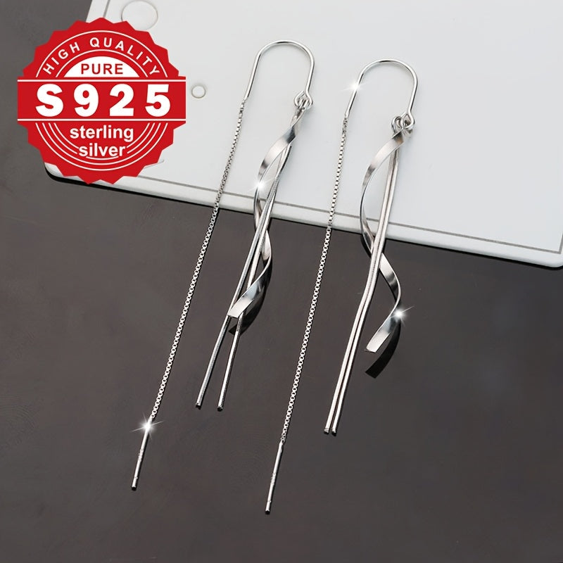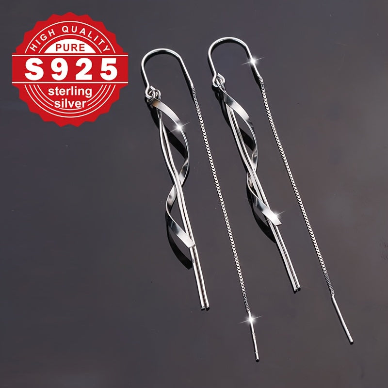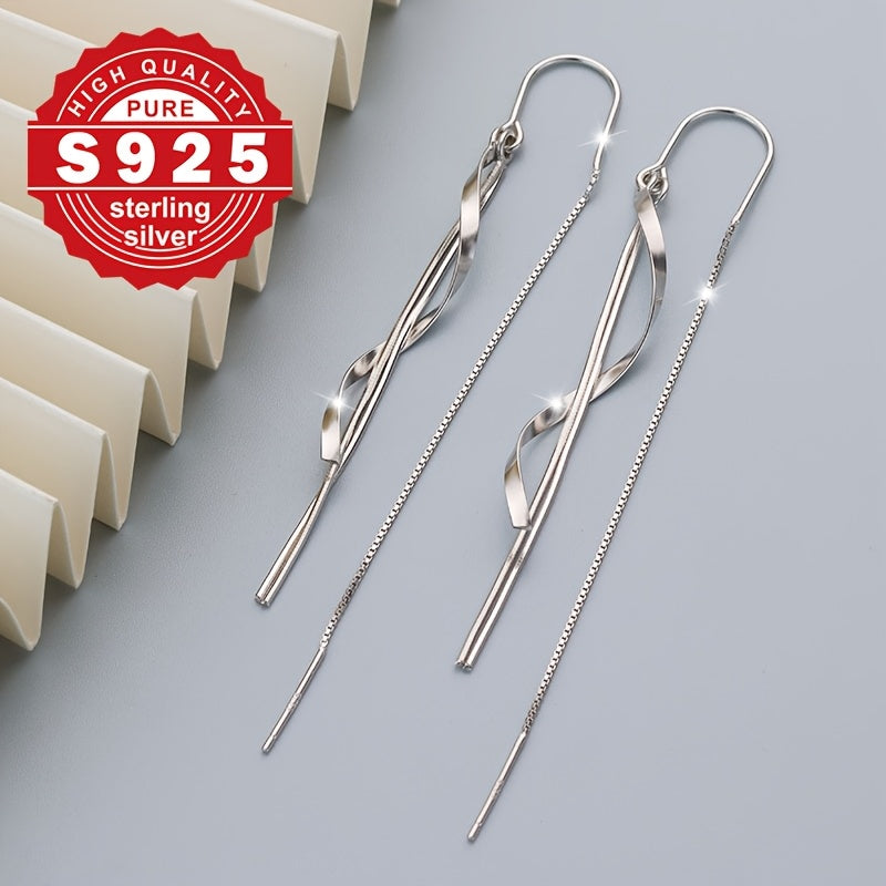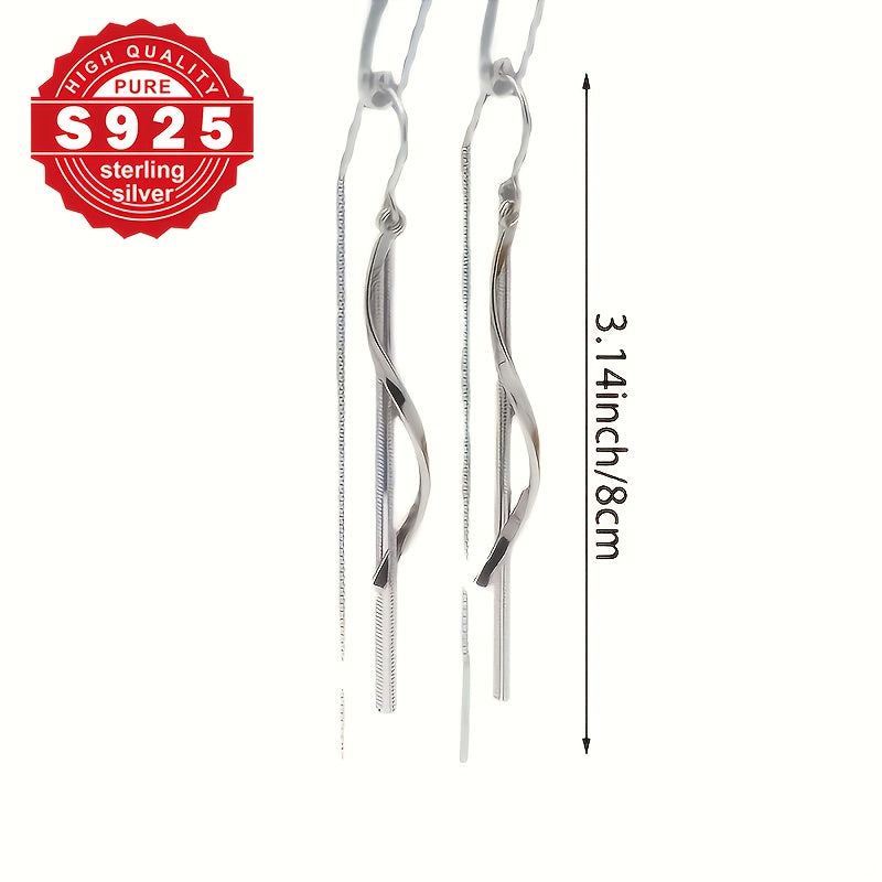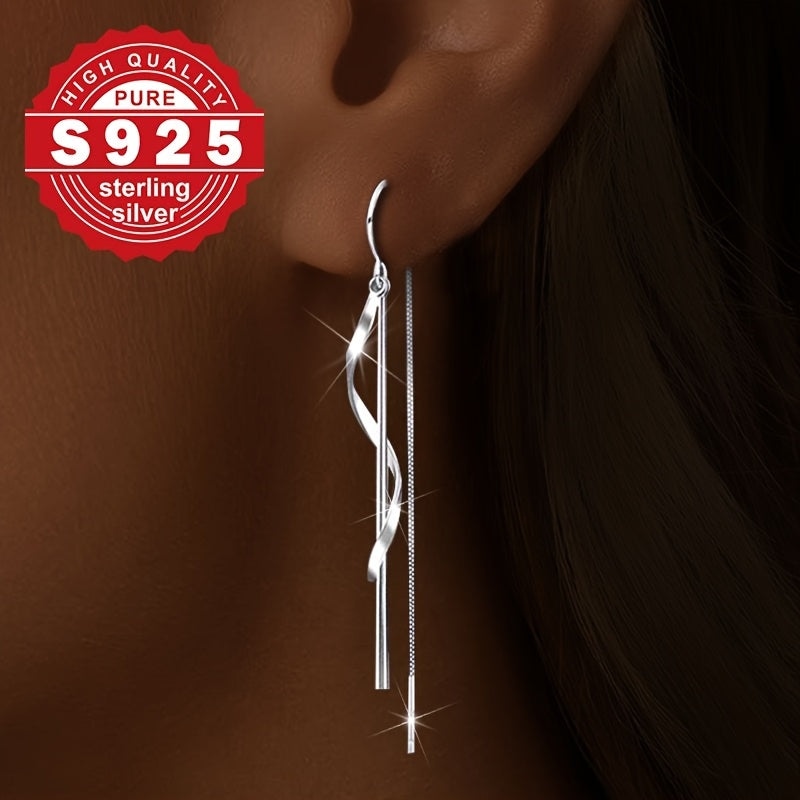 These high-end chain earrings are made of pure S925 silver with a smooth line design. Perfect for daily wear, commuting, and low allergy concerns.