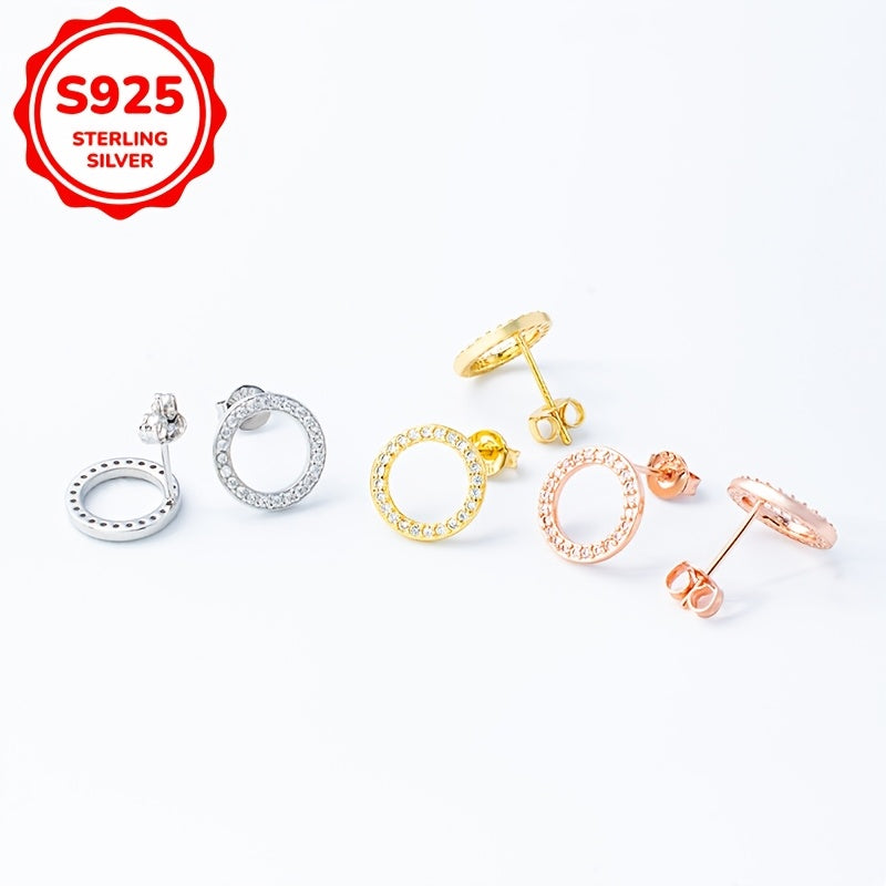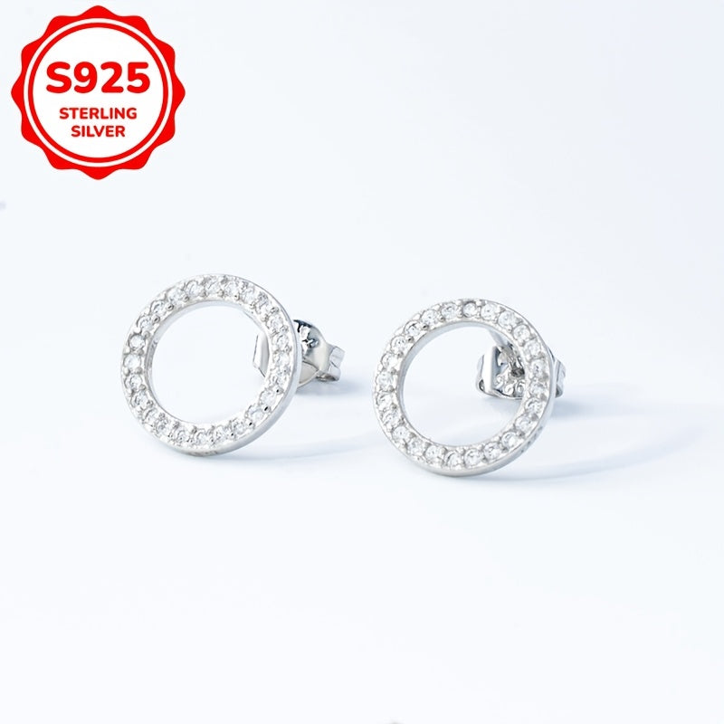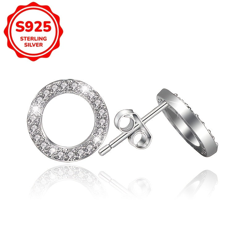 Add a touch of creativity to your daily commuting outfit with these stylish zirconia inlaid circle earrings. Made from 925 sterling silver, these lightweight earrings are perfect for everyday wear.