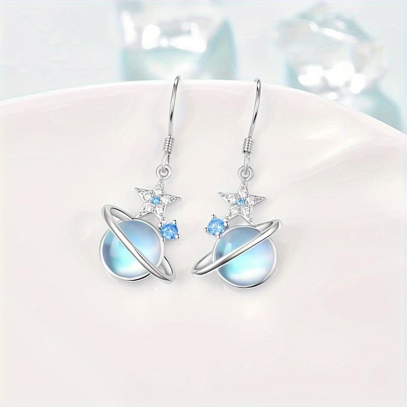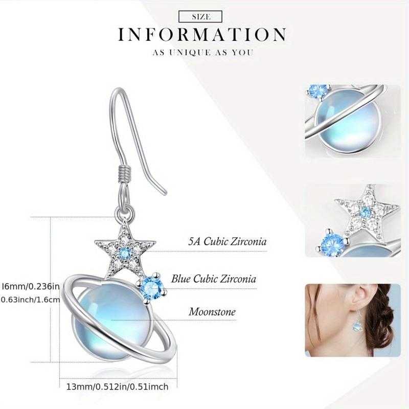 Add a touch of celestial beauty with these starry sky moonstone dangle earrings. Made with hypoallergenic S925 silver, this stylish pair is perfect for everyday wear or special occasions.