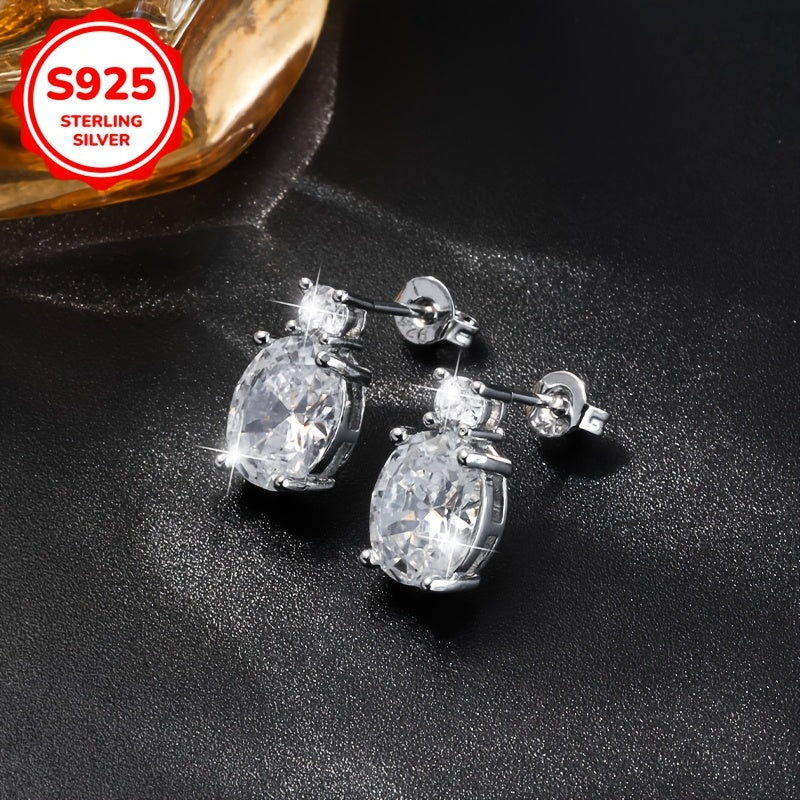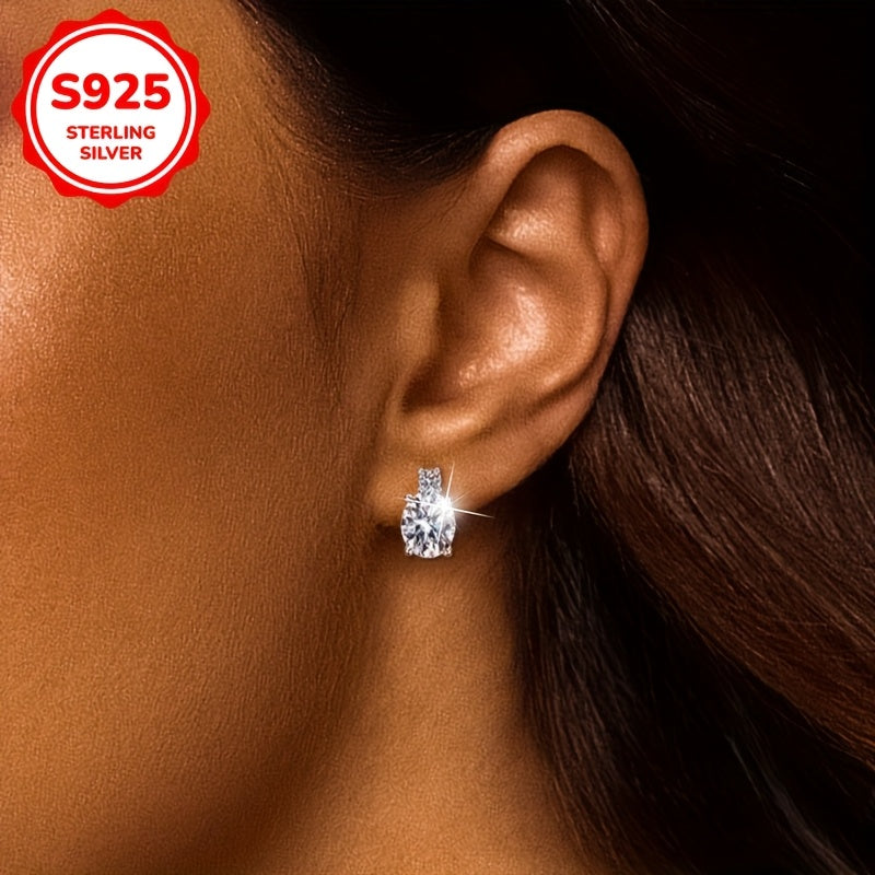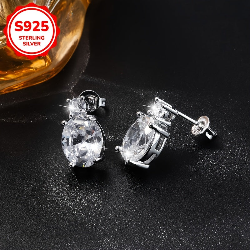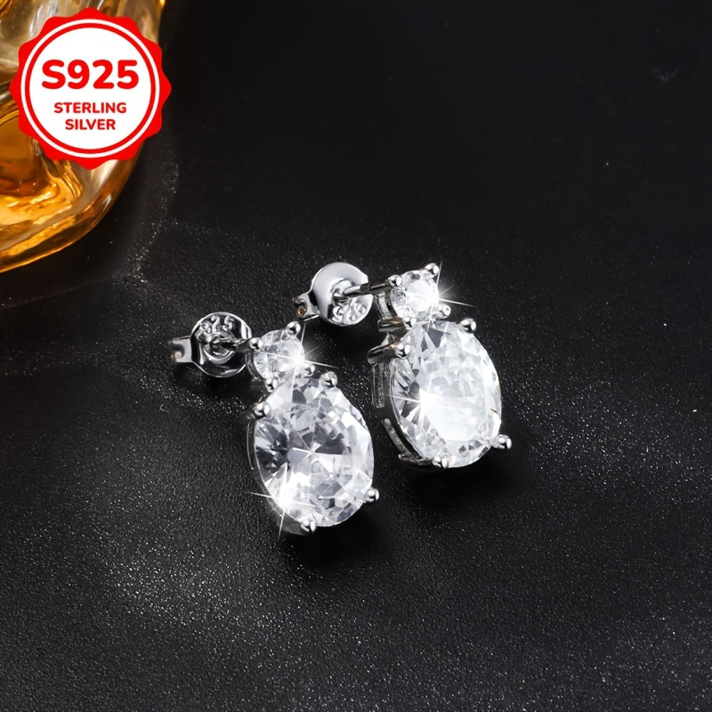 These fashionable earrings are inlaid with synthetic zirconia, made of stylish 925 silvery material, weigh 4g, and are perfect for festive, daily wear, and vacation.