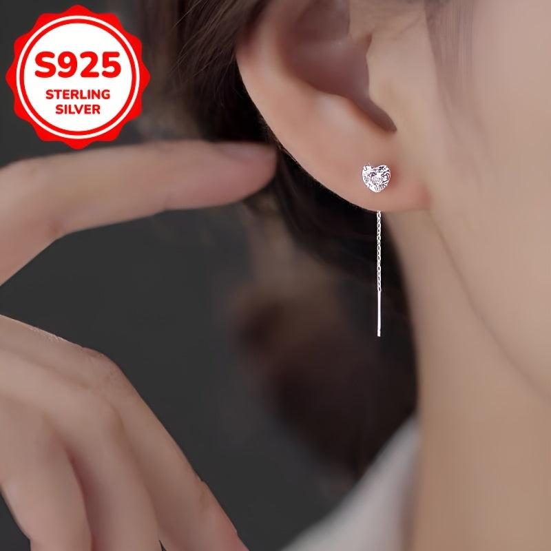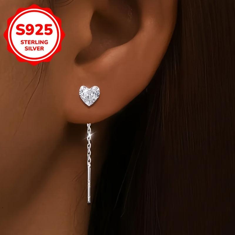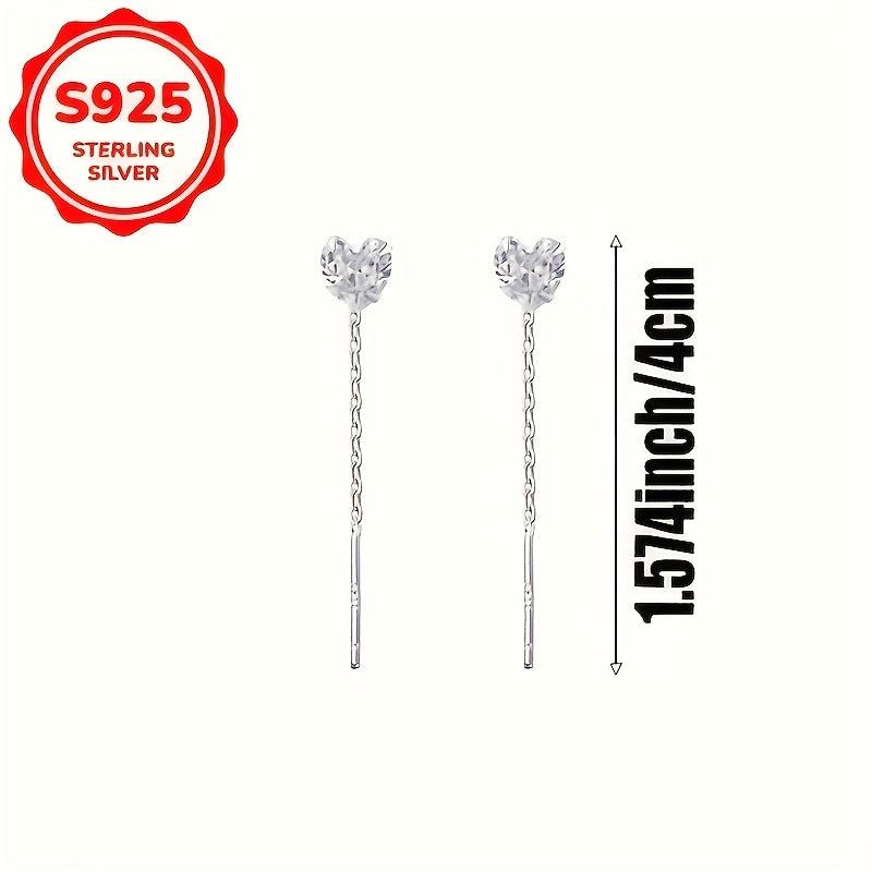 Add a touch of glamour to your look with these stylish tassel earrings featuring four prong heart-shaped synthetic zirconia. Made of lightweight S925 silver, these earrings are suitable for daily wear.