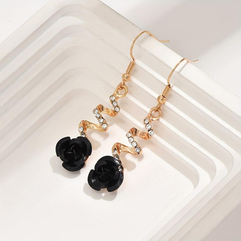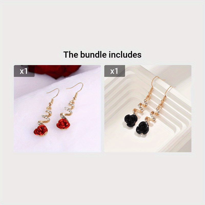These elegant rose earrings feature red floral accents and golden tone metal, perfect for daily wear or parties year-round.