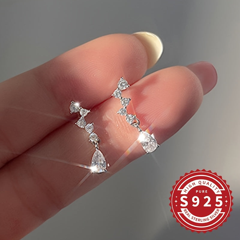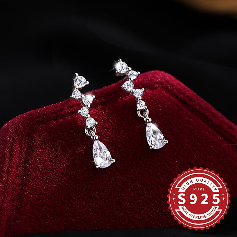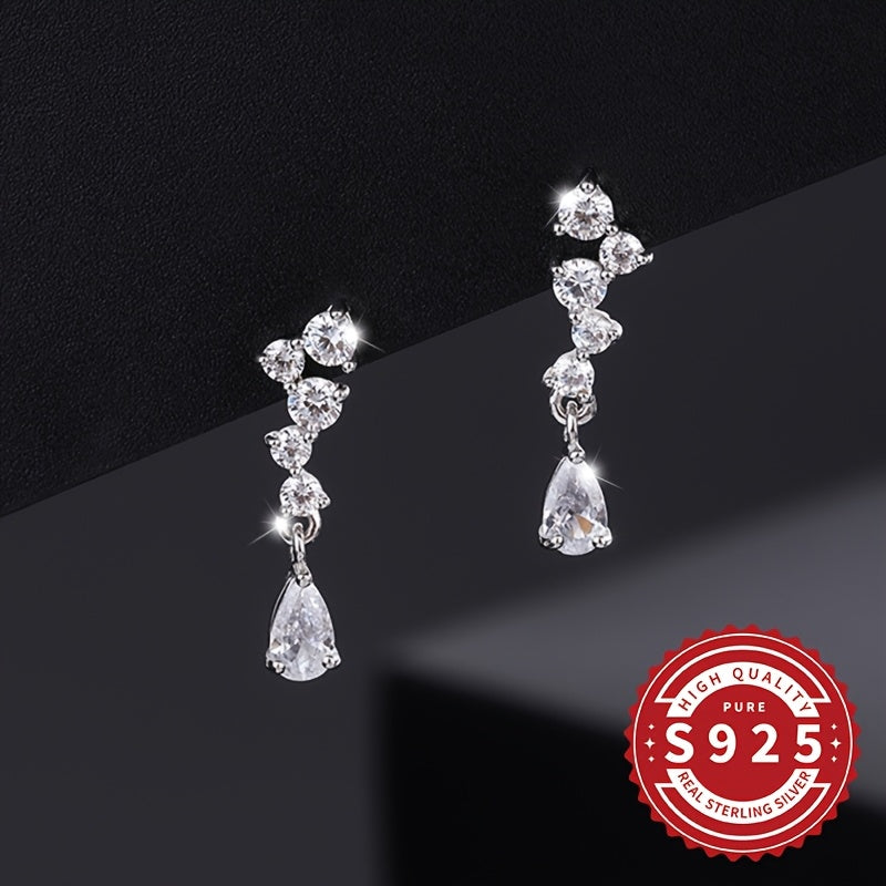 These elegant water drop tassel earrings are made of S925 silver, perfect for daily casual wear or as a gift. They are low allergy and suitable for sensitive ears.