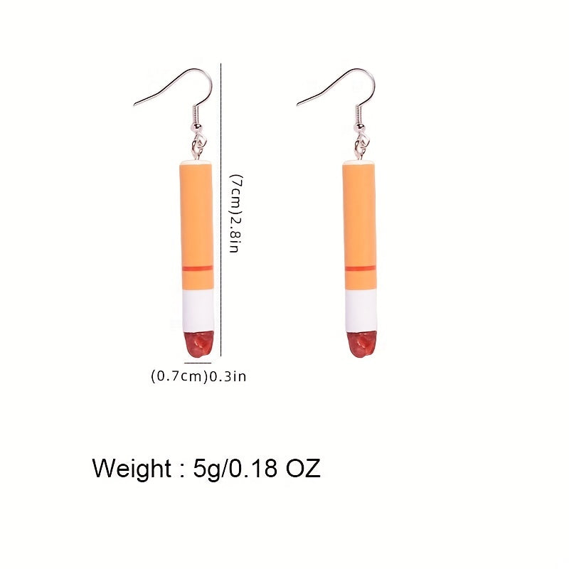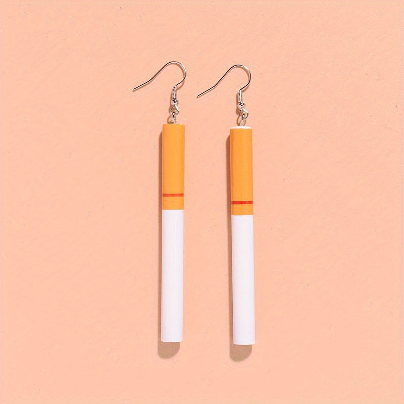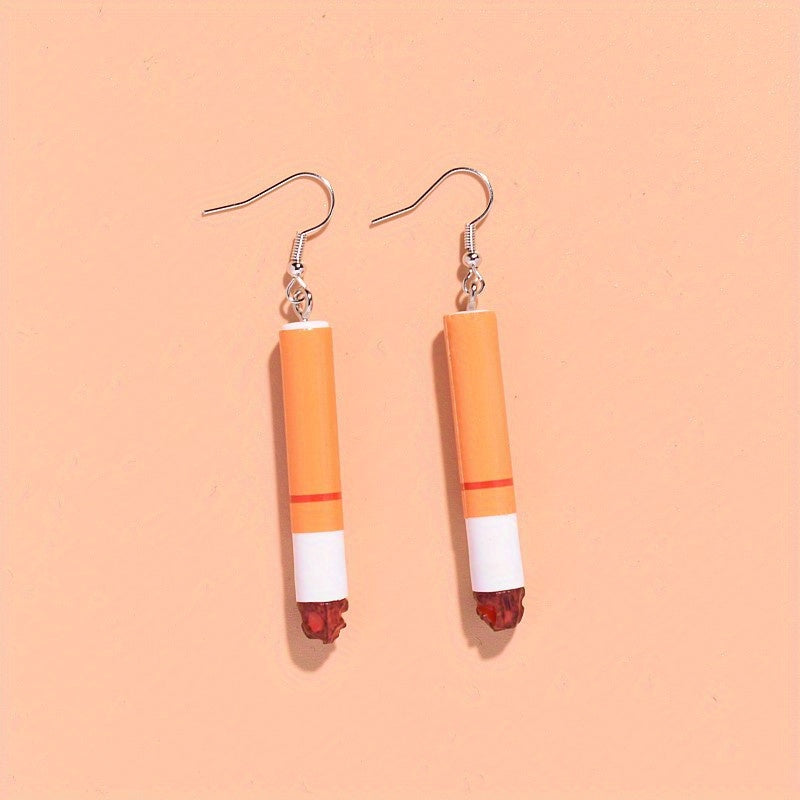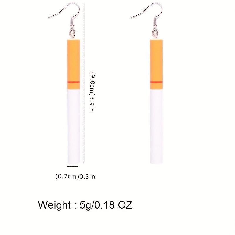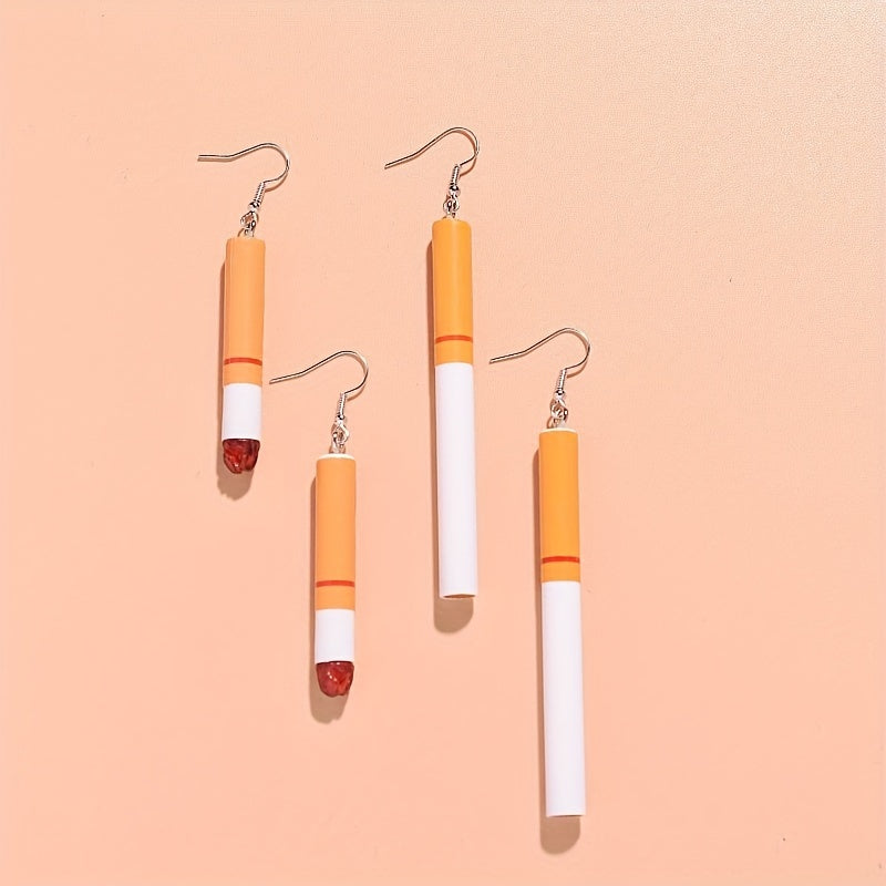 Add a unique edge to your look with these long drop earrings featuring cigarette butt design. Perfect for those with a bold sense of style.