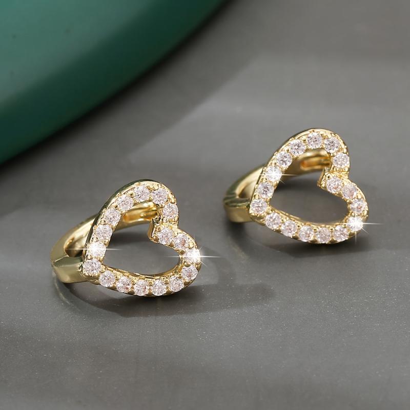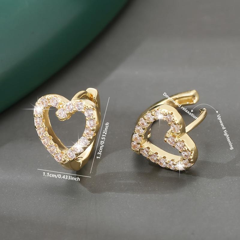 Elevate your style with these chic heart hoop earrings featuring synthetic zirconia inlay. The copper base with no plating offers a sleek look that's perfect for daily wear.