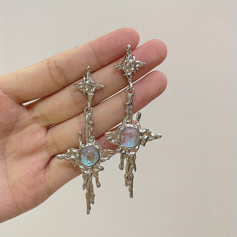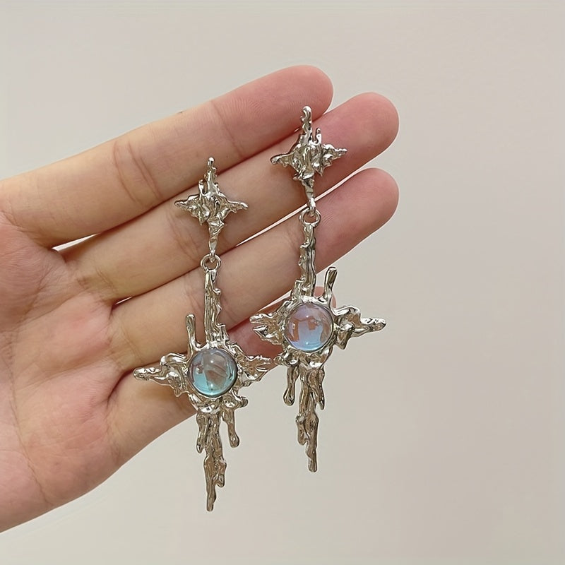 Add a touch of celestial charm to your look with these Y2K star dangle earrings. The silver plated design features synthetic gemstones for a dazzling effect.