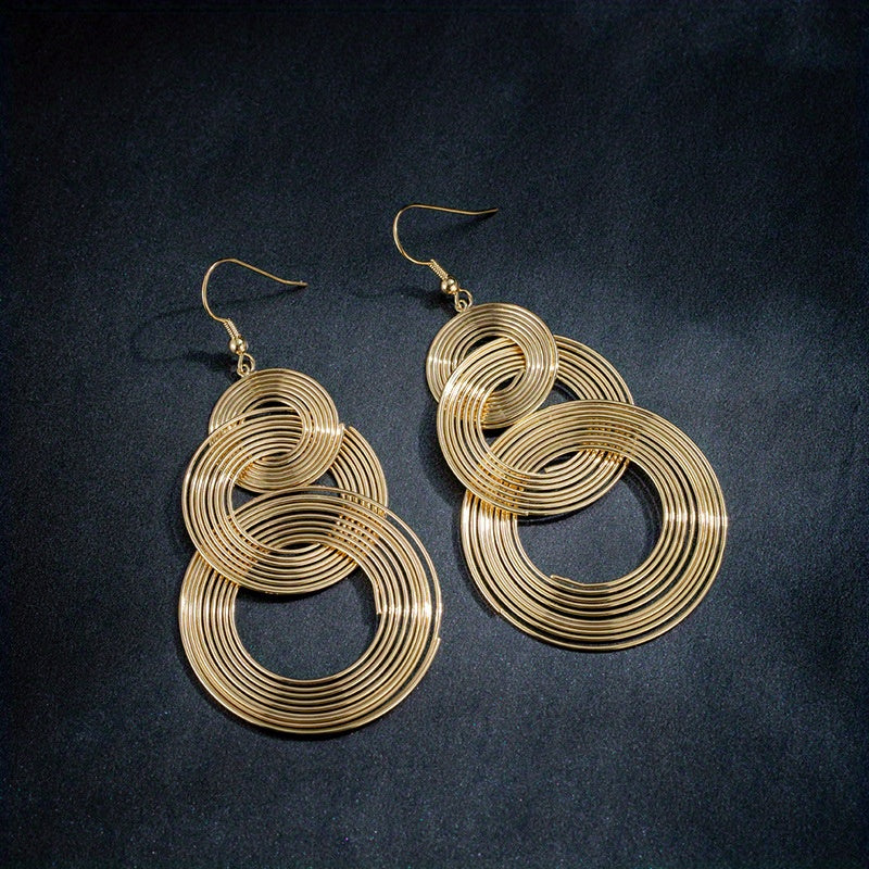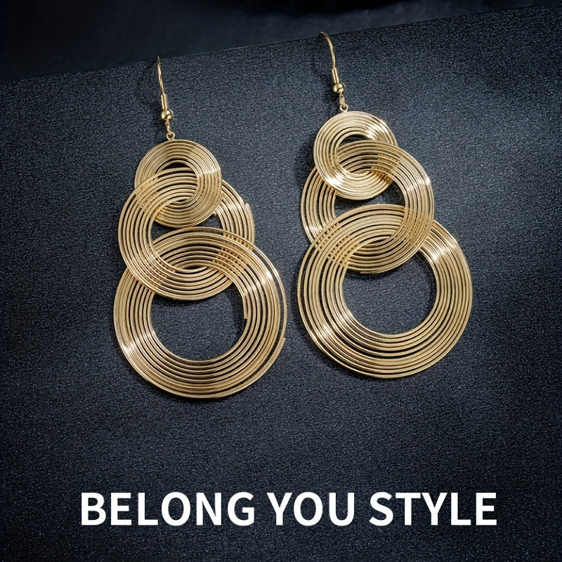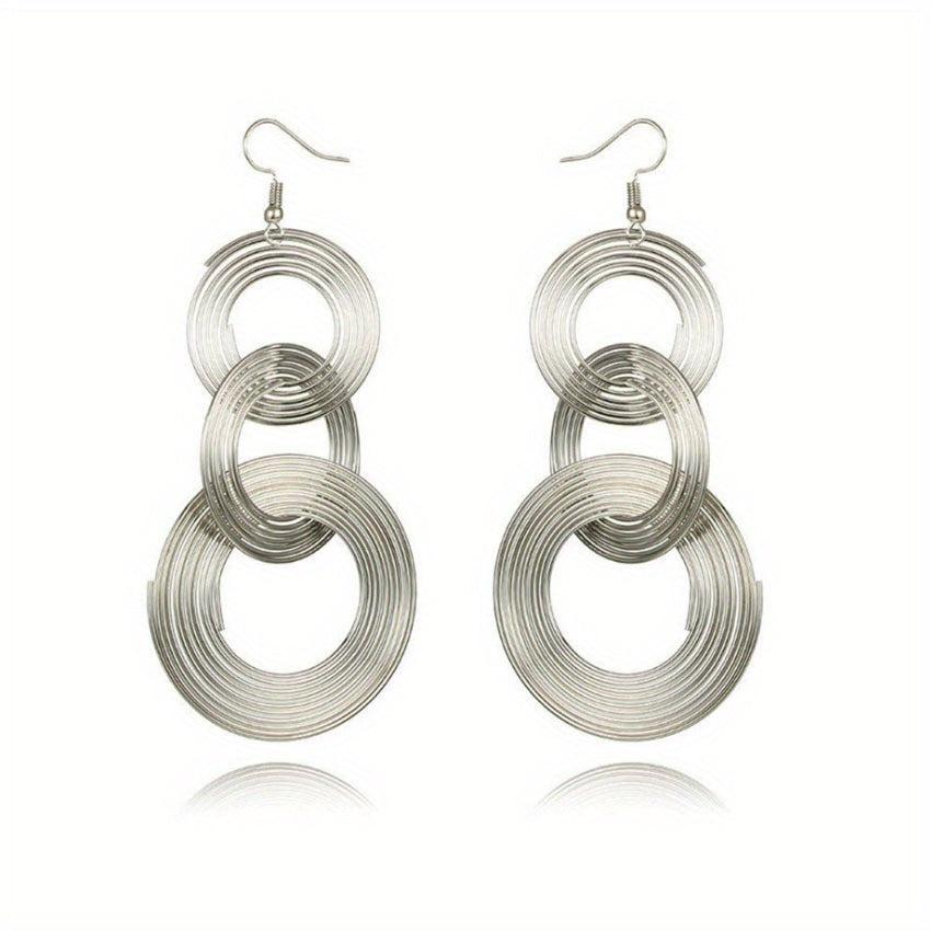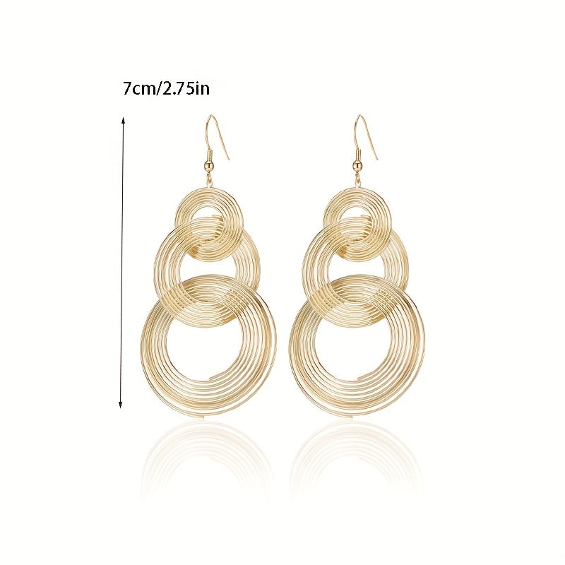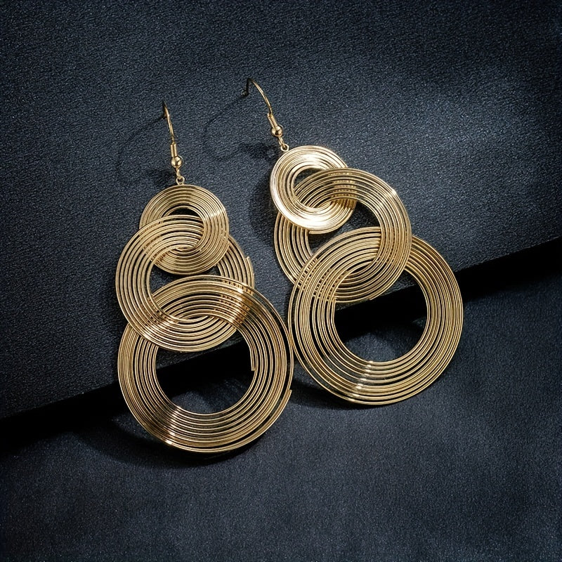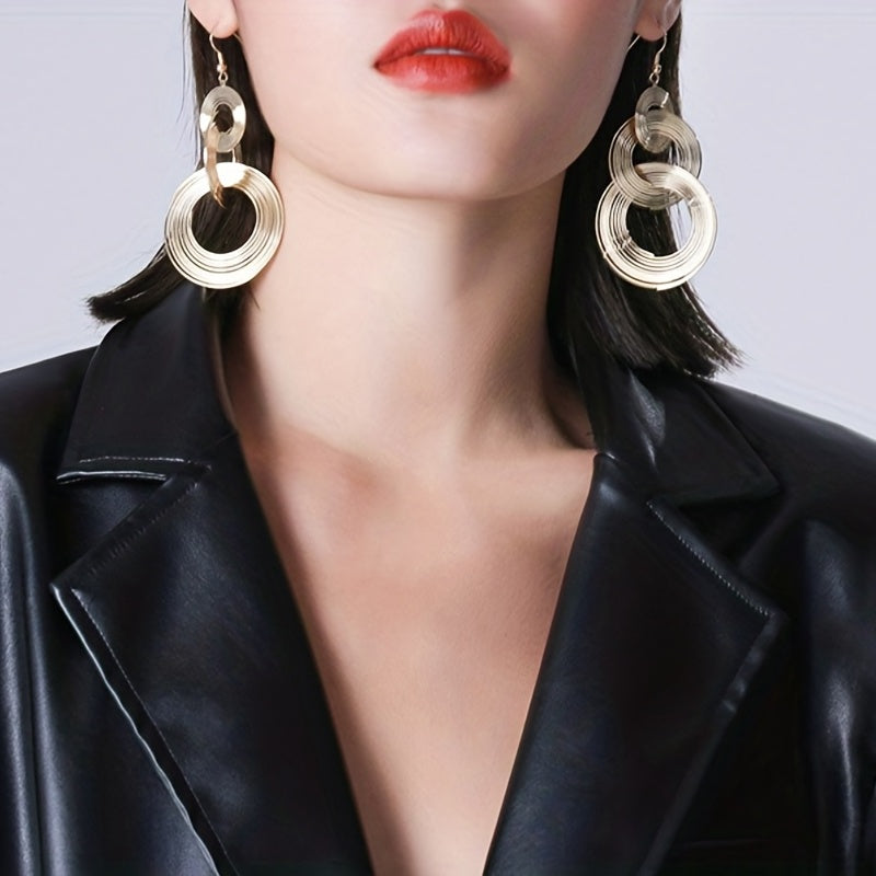 Add a retro touch to your outfit with these exaggerated metal circle dangle earrings. Perfect gift for females who love unique jewelry.