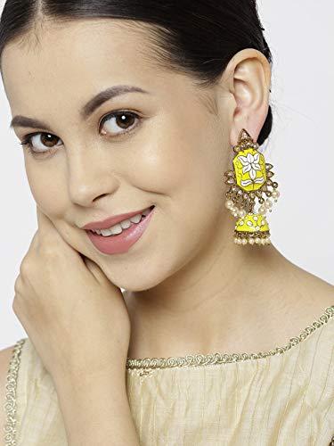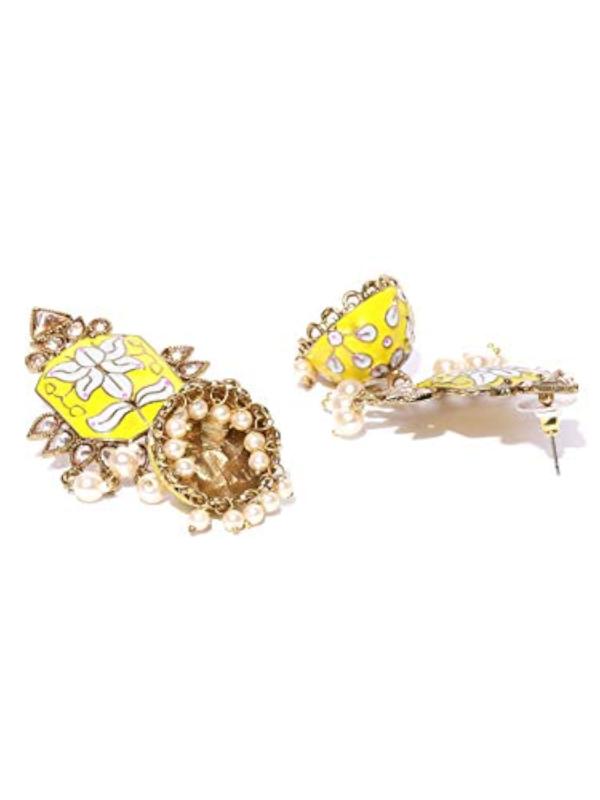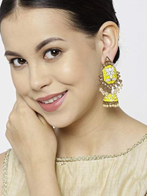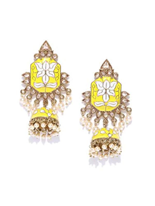 Exquisite hand crafted plated yellow jhumka earrings designed for women
