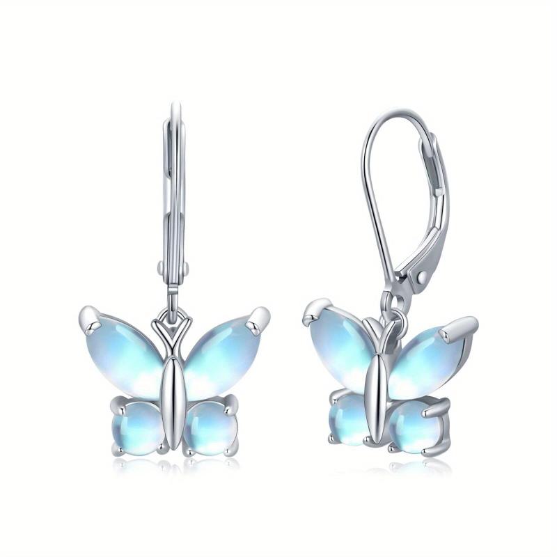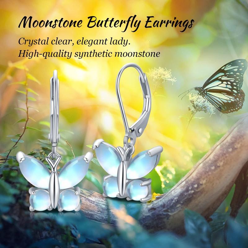 These exquisite butterfly dangle earrings feature moonstone accents, perfect for daily wear or special occasions. Crafted from 925 sterling silver, they exude vintage charm and elegance.