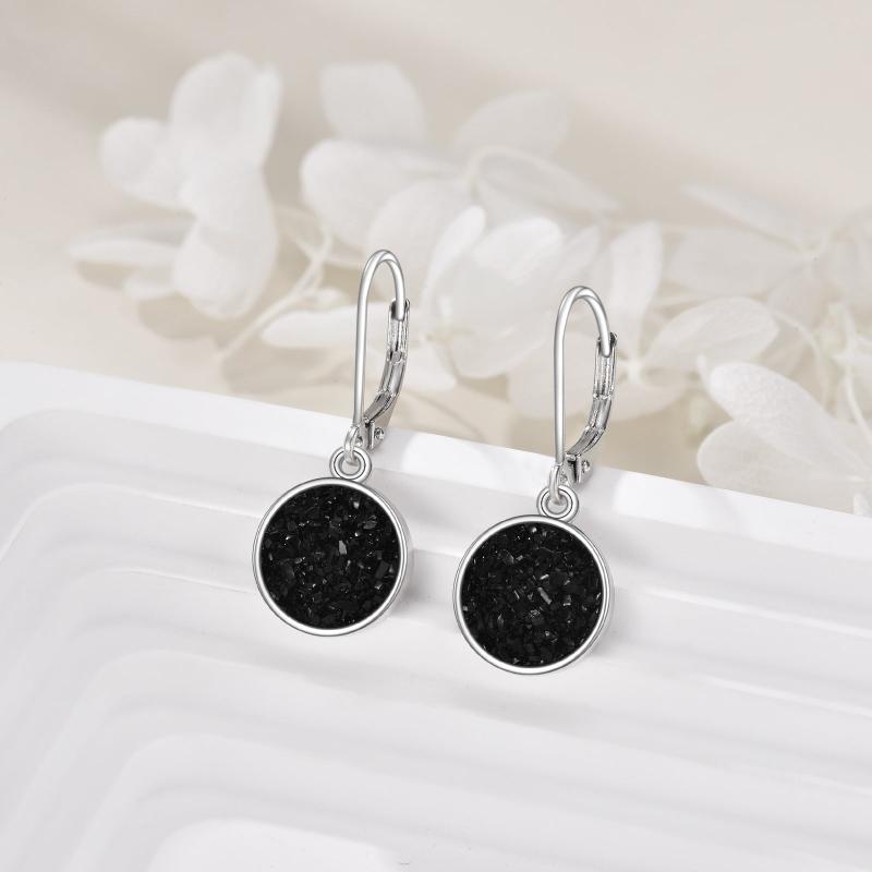 Sterling Silver rough drusy crystal dangle drop leverback earrings. Add a touch of sparkle to your outfit with these elegant earrings.