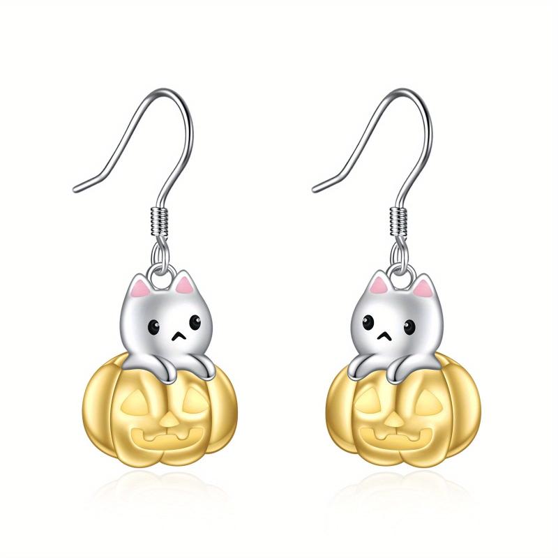 These adorable pumpkin kitten dangle earrings are the perfect accessory for daily wear. The vintage style adds a touch of charm to any outfit.