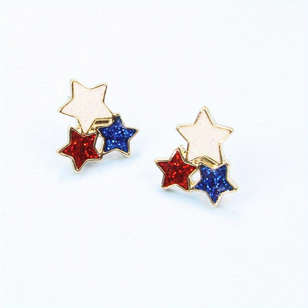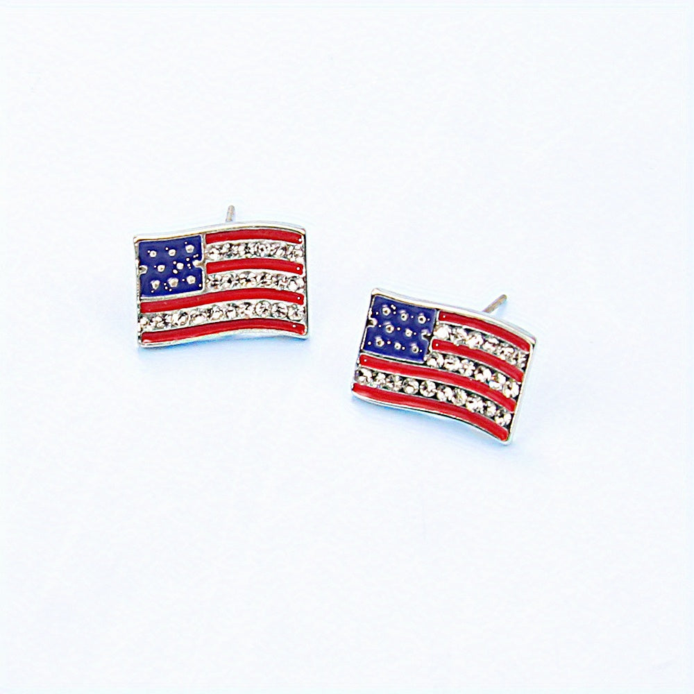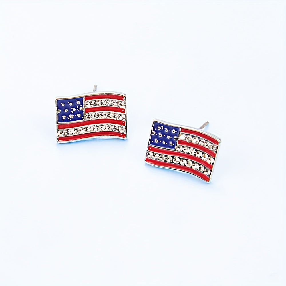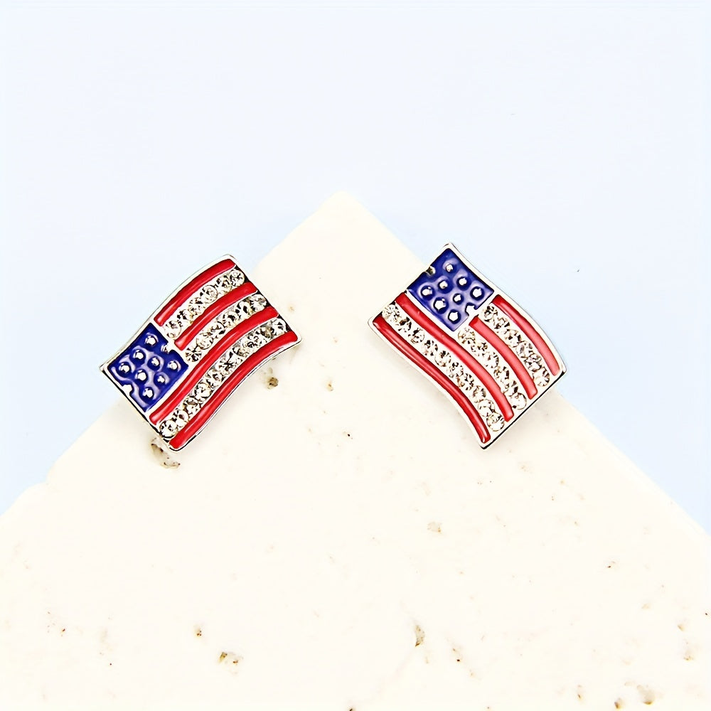 Add a touch of personality to your look with these unique zinc alloy earrings. Featuring a rhinestone flag design with a five-pointed star, butterfly, and rainbow accent.