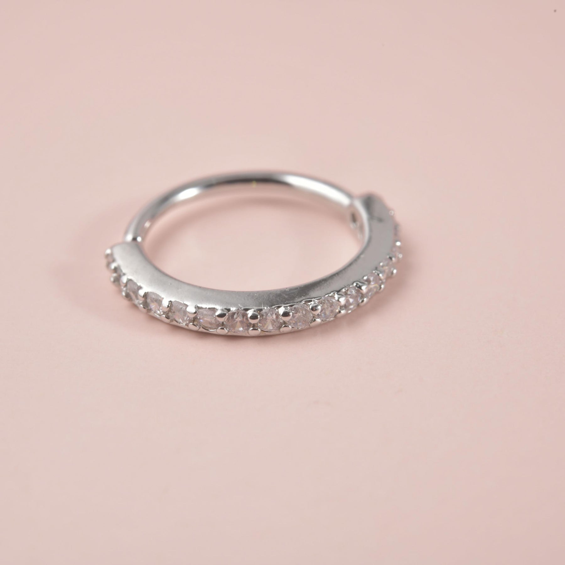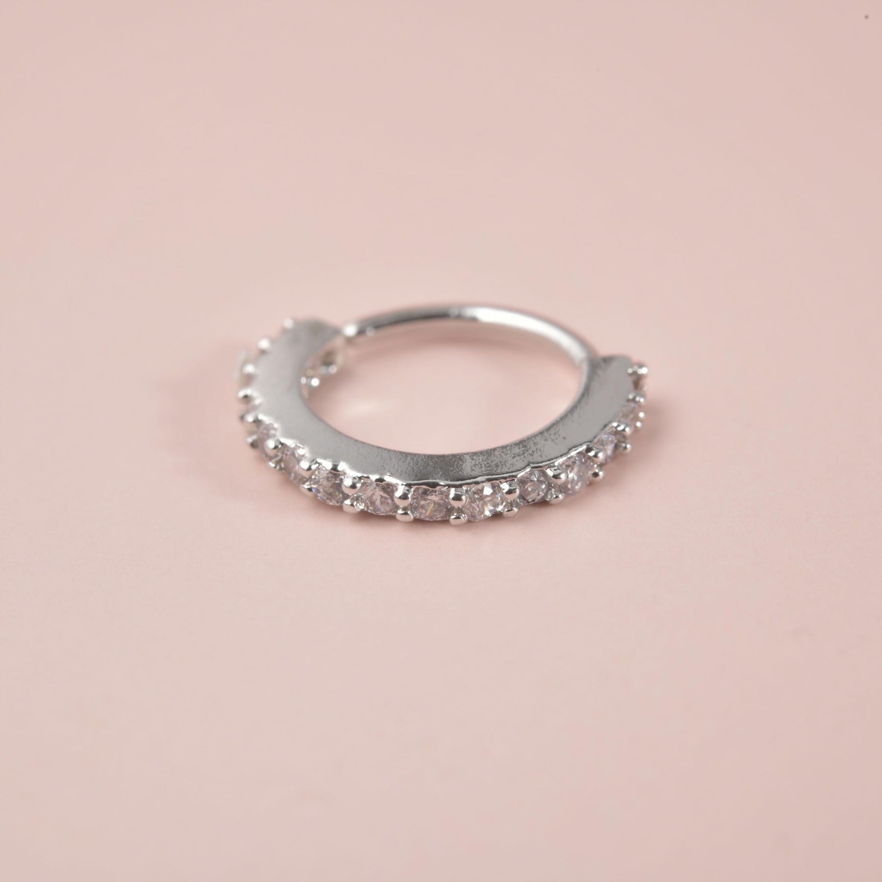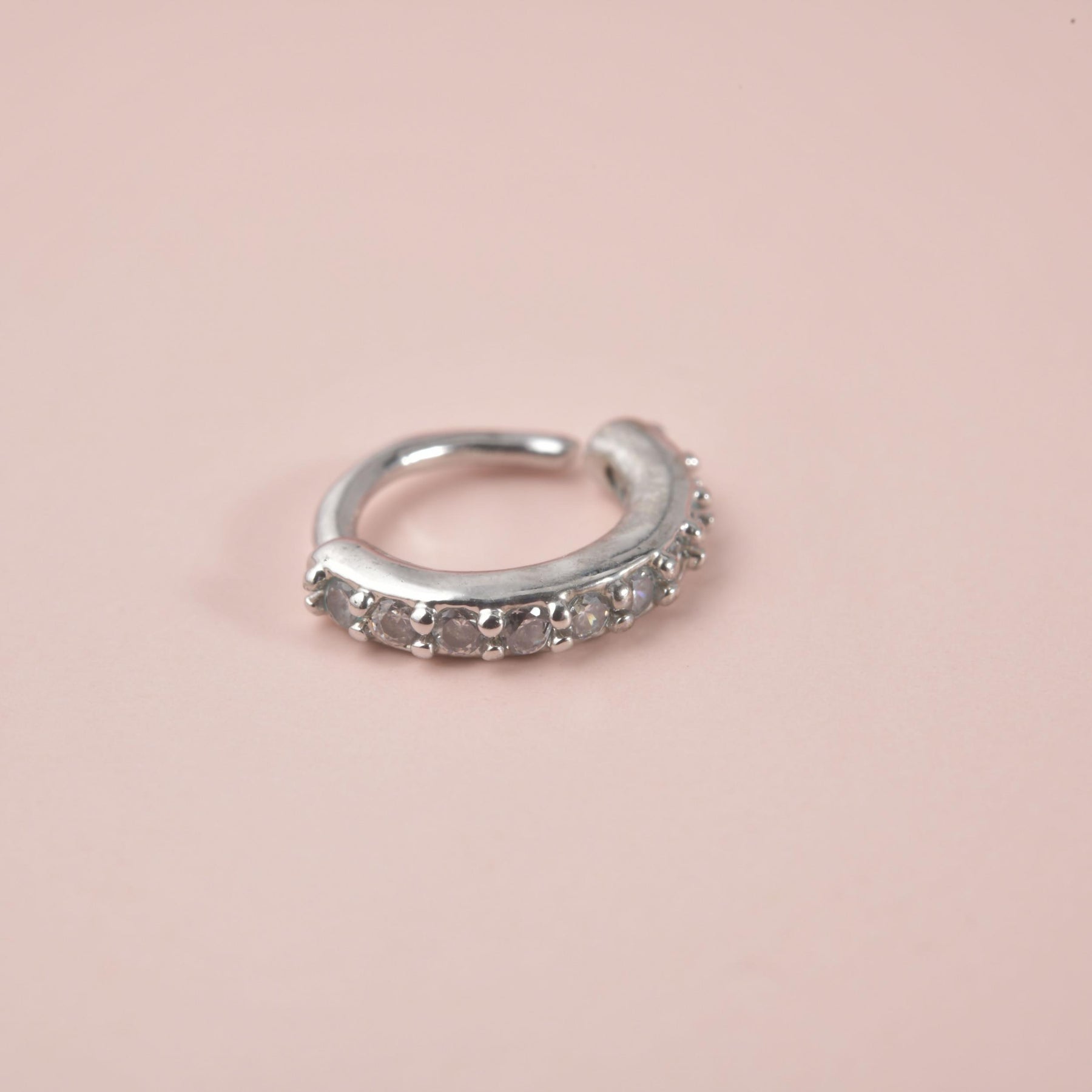 This round zircon bendable gem ring is a versatile piece that can be used as a nose ring, cartilage earring, or ear piercing. Made of brass with a crystal gem, it is elegant and easy to wear.