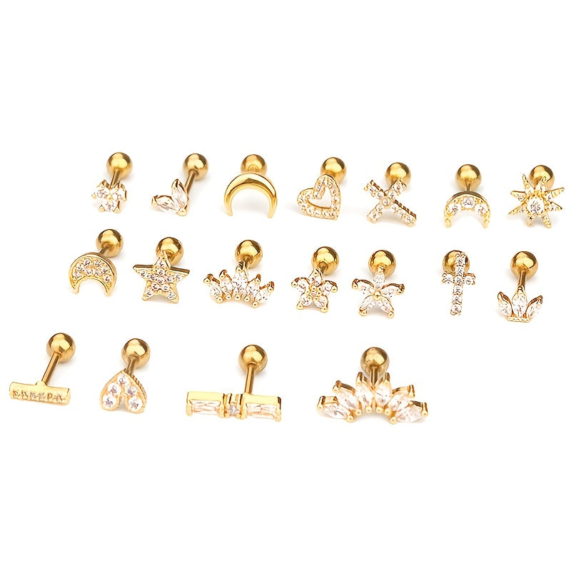 Elegant inlaid zircon crown ear bone nail screw ball earrings with a European flair.