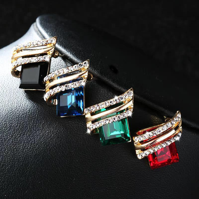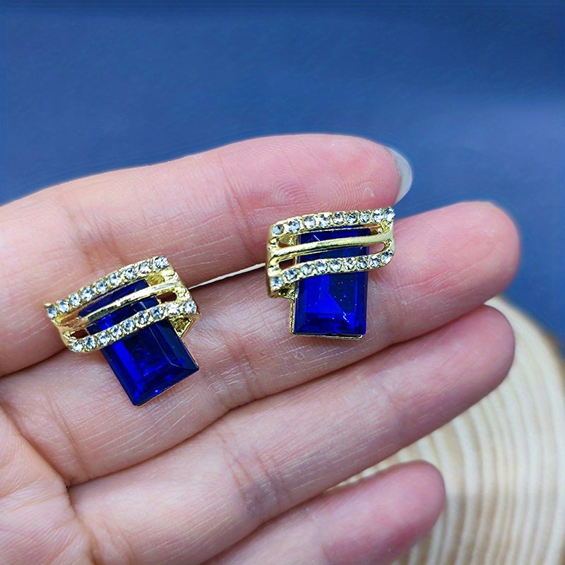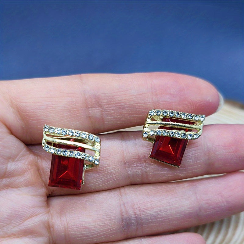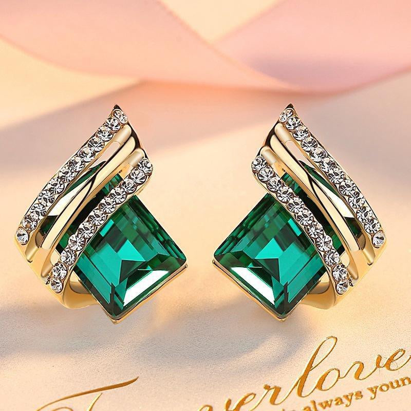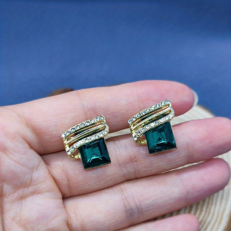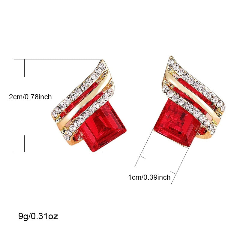 Elegant cuboid zircon stud earrings plated with 18K gold for daily wear. Perfect accessory to elevate your style.