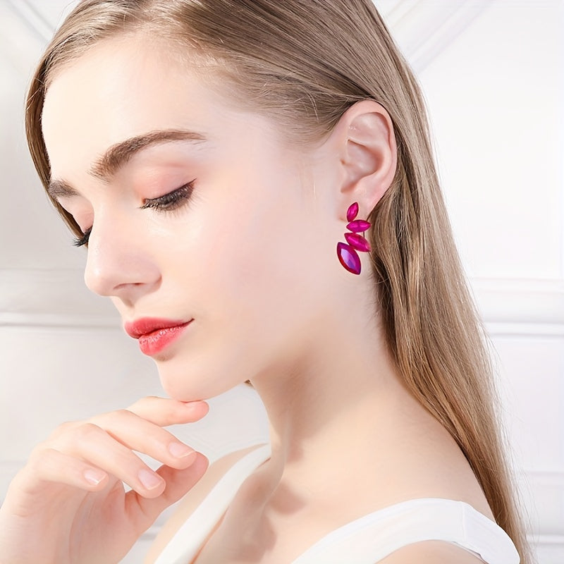 These retro-style stud earrings feature a horse eye shape design with zircon decorations. Made of zinc alloy, they make a perfect gift for females who appreciate bohemian fashion.