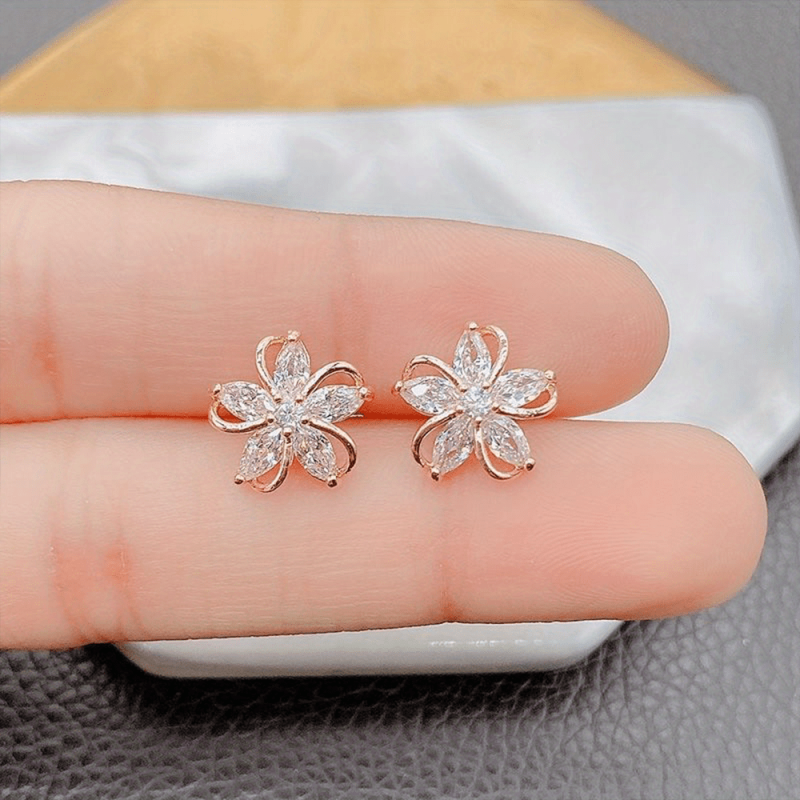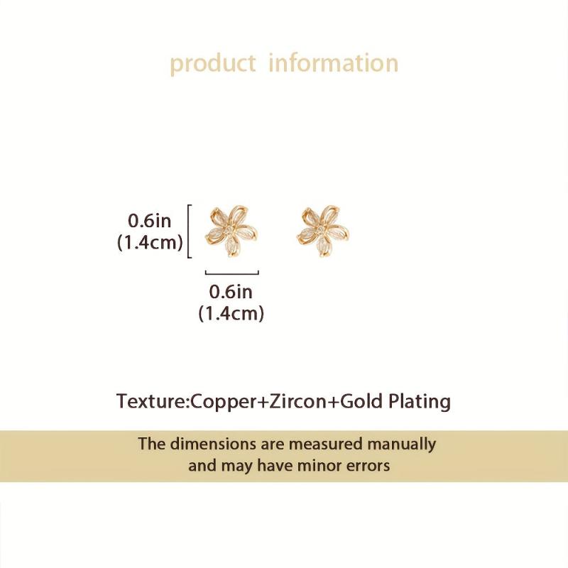 Elegant stud earrings with zircon decoration, crafted from copper and plated with 14K gold. Ideal gift for women to add a touch of glamour to their look.